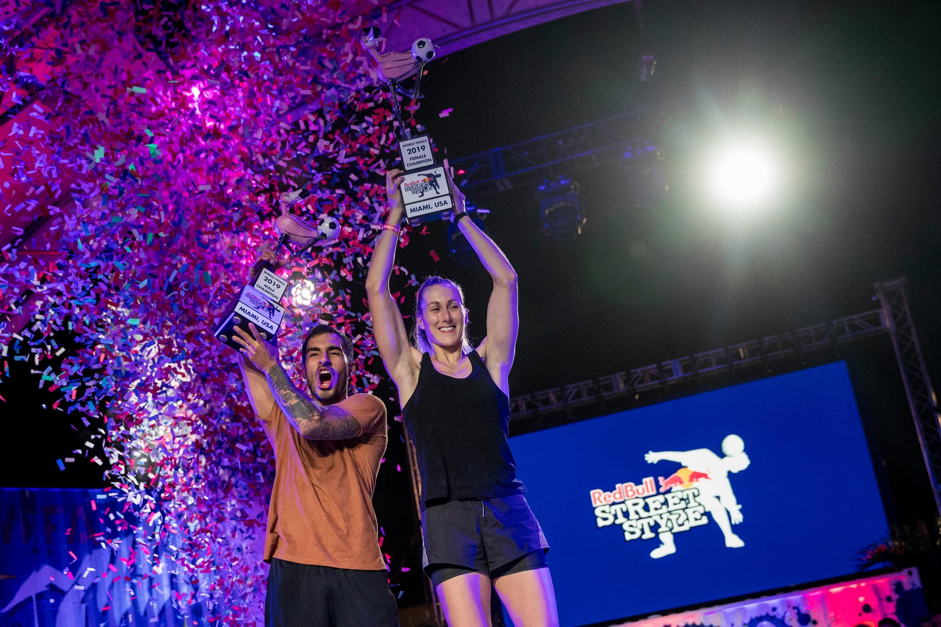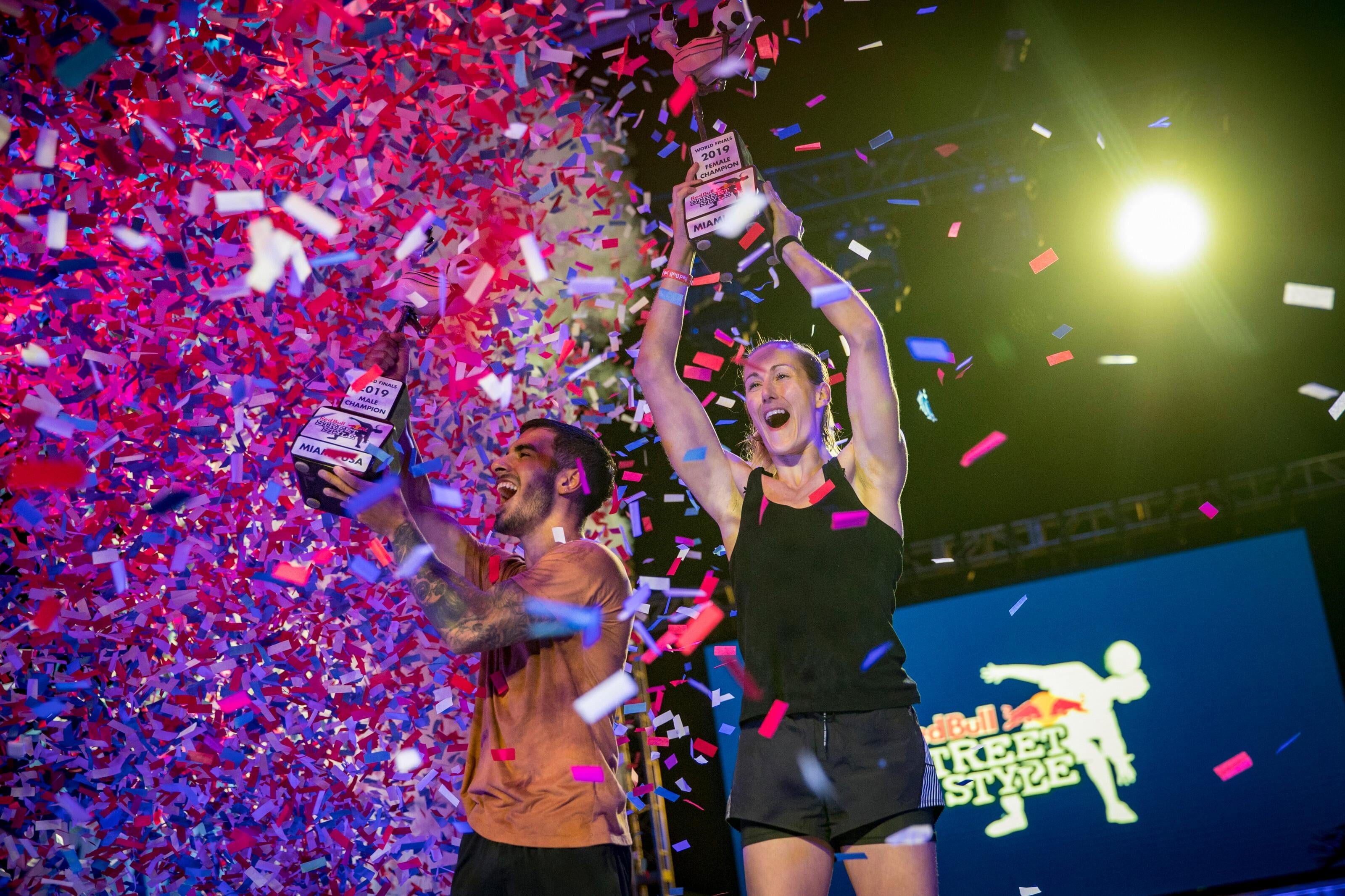 Ricardinho e Melody Donchet com os troféus do Red Bull Street Style 2019