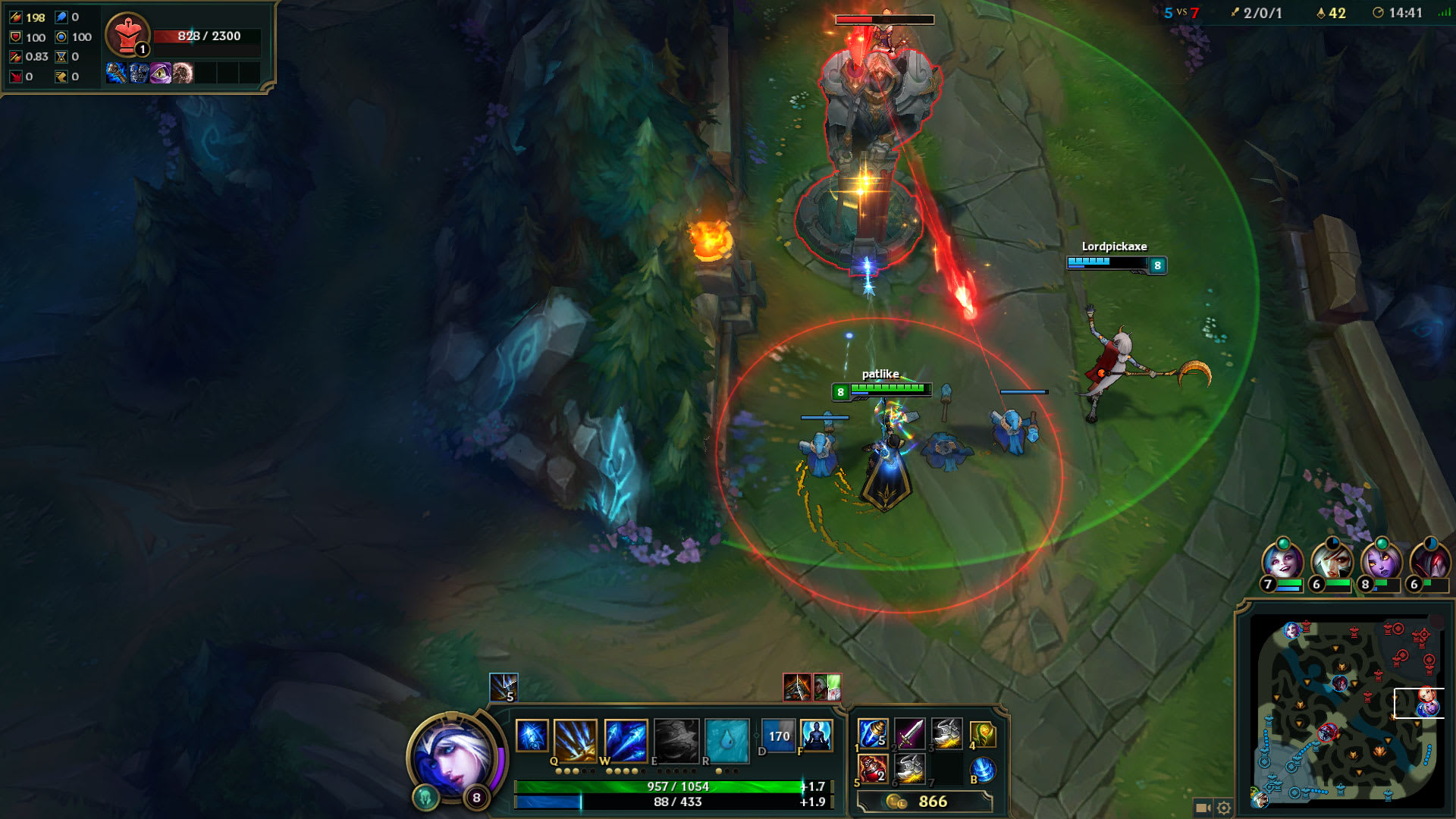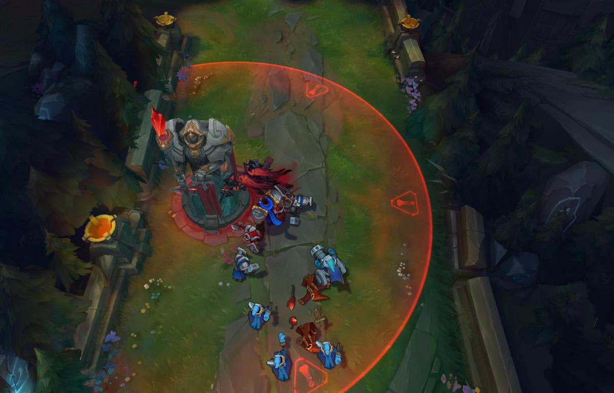 Se parecer fácil demais, provavelmente o outro time está lhe atraindo para uma armadilha, então prossiga com cuidado. Da mesma forma, fique perto de sua torre se não estiver confiante ou se o adversário conseguir te empurrar, pelo menos até sua próxima onda de Minions chegar, e proteja-se com o poder de fogo extra de sua torre!