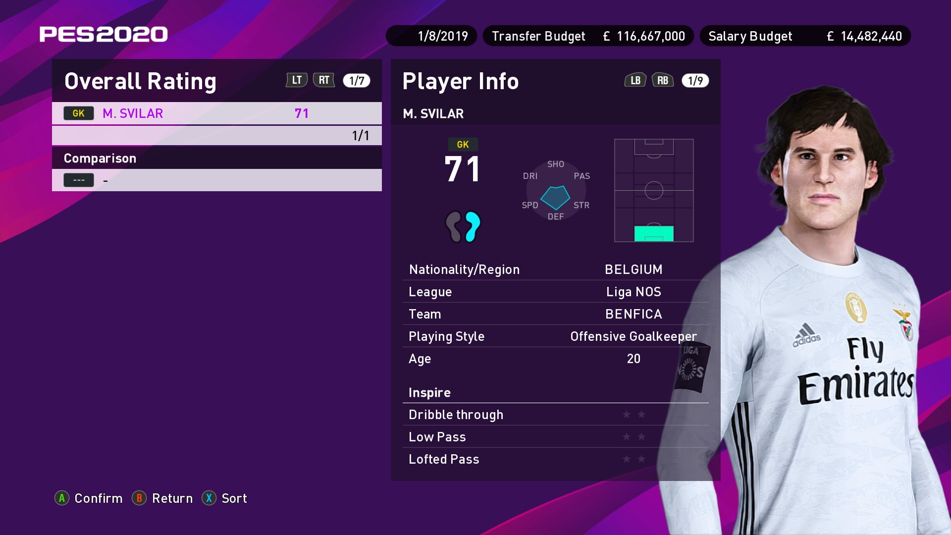 Por pouco dinheiro você pode contratar o goleiro sérvio nascido na Bélgica. A maior força de Svilar, classificada com 71, são seus Reflexos GO (86), embora seu Talento GO (84) e sua Impulsão (80) estejam logo atrás. Com apenas 20 anos, tem espaço para crescer, então contrate-o antes que de algum rival.