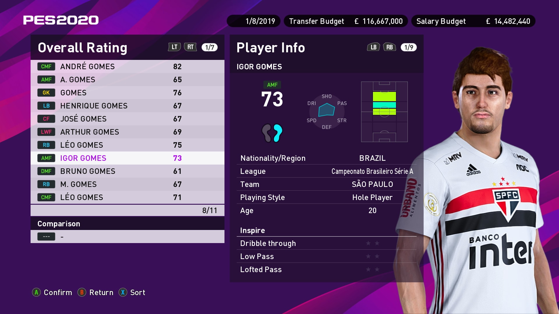 Ligue o PES 2020 e contrate este homem agora. Por seu preço e salário, ele é uma necessidade absoluta. O são-paulino é um meia-atacante com um fabuloso controle de bola (76) e é tão adepto do drible (75) que consegue deixar a concorrência na saudade. Uma de suas principais habilidades é seu chute de longa distância, fora ser reconhecido como um Jovem com Potencial no jogo - o que significa que ele dominará as habilidades do jogo mais rapidamente do que outras jovens revelações de sua idade.