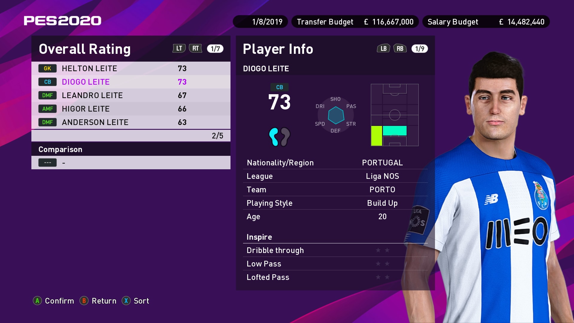 Leite nasceu e cresceu no Porto e ingressou na academia do clube aos nove anos de idade, mas é hora de mudar. Leve este zagueiro central de 1m80 agora por menos de 5 milhões de libras e tenha uma muralha no centro da defesa por anos. Com uma classificação geral de 73, Leite é um líder natural, o que aumentará a condição de alguns jogadores em grandes jogos. Seu talento defensivo (75) e cabeçada (76) se destacam em suas estatísticas, entretanto ele também não tem medo de ficar preso, como mostra seu contato físico (75). Ele também é forte como zagueiro pela esquerda, o que oferece opções se precisar mudar um pouco as coisas.