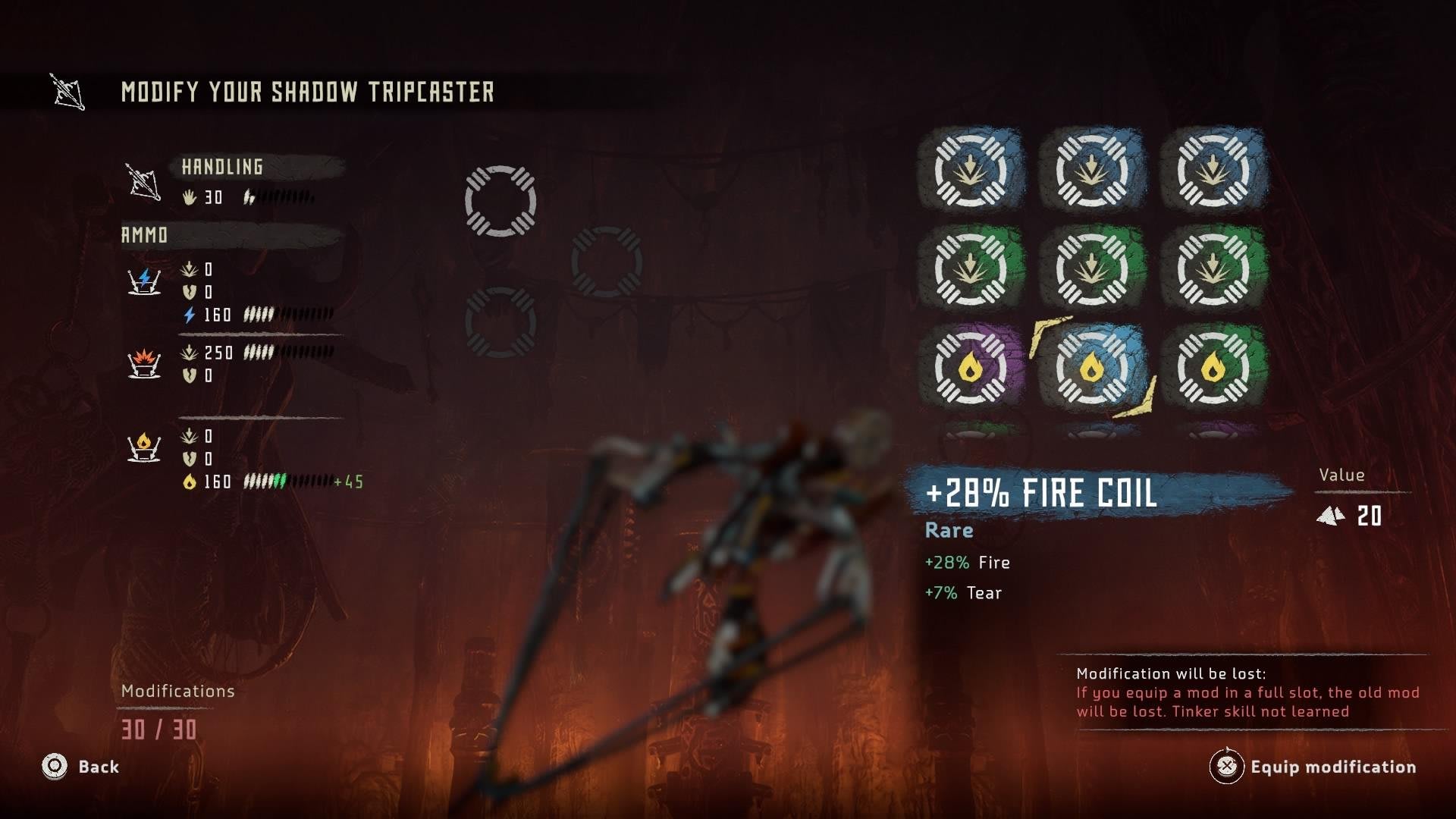 O sistema de armas de Horizon Zero Dawn pode ser bem confuso no início, porém é incrivelmente útil uma vez que você pegue o jeito. É possível adicionar modificações aos seus itens para melhorar as habilidades de Aloy, como furtividade e resistência a dano. Assim, encontre tempo, sempre que possível, para melhorar seu equipamento e trocar as modificações por novas que você conquiste no caminho. É bem mais fácil se você sempre mantiver seus modificadores no máximo.