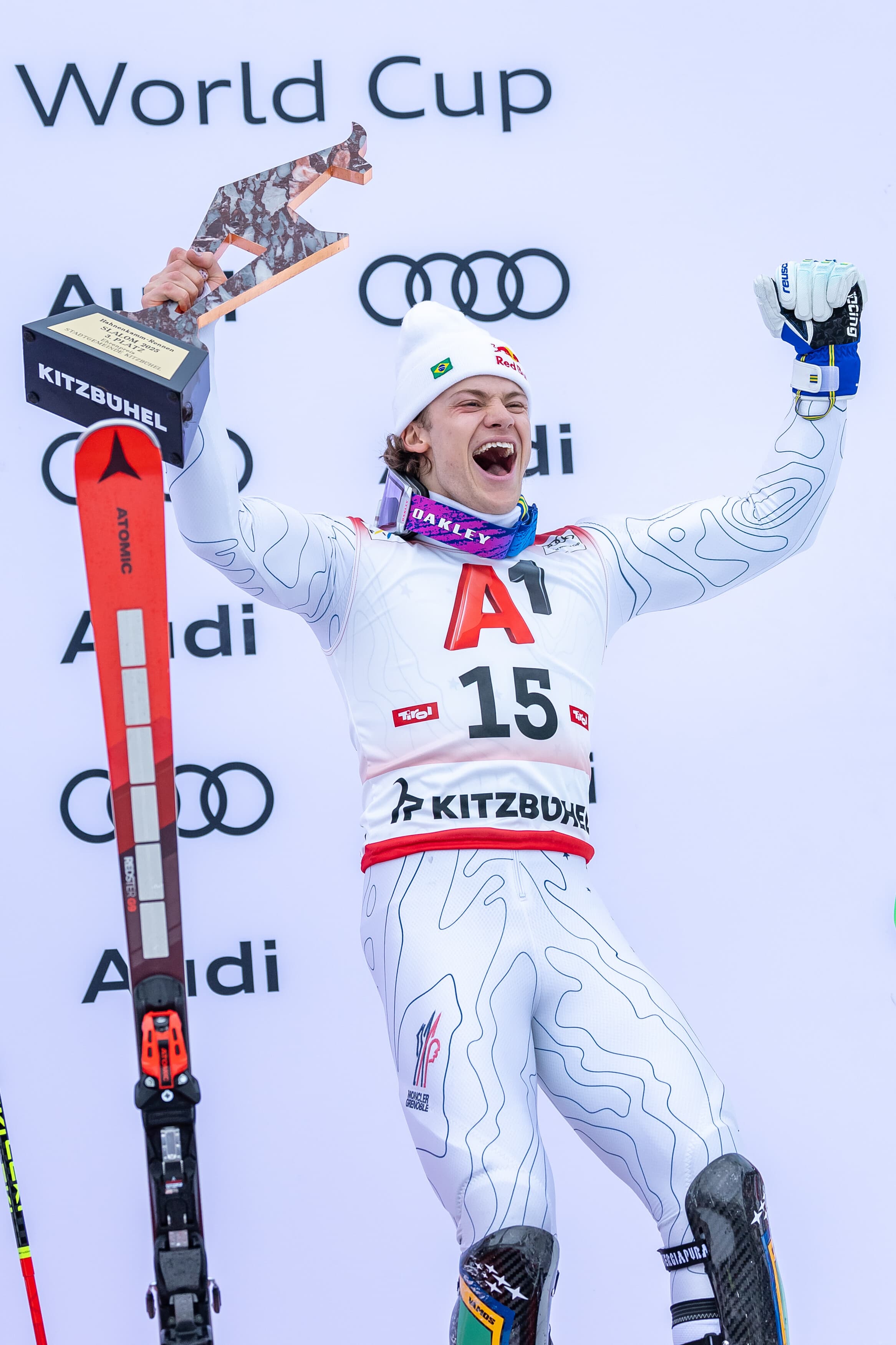 Mas faltava um ouro. E ele chegou na abertura da temporada de slalom 2025-26 em Levi, Finlândia. Lucas se tornou o primeiro esquiador brasileiro a vencer uma etapa da Copa do Mundo de Esqui Alpino da FIS.