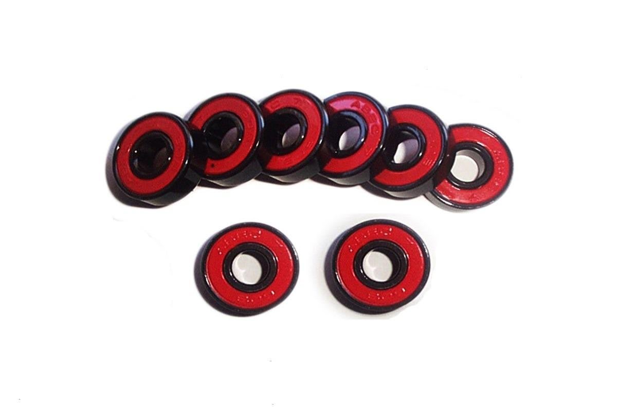 Cada skate tem 8 rolamentos, sendo 2 por roda. São anéis de metal com 6, 7 ou 8 bolas dentro protegidas por dois discos finos, normalmente de alumínio.
