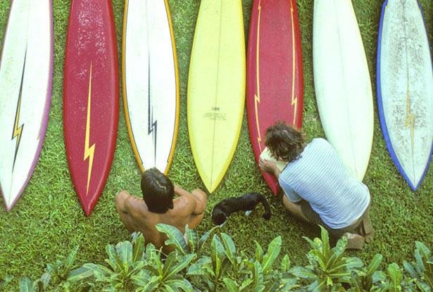 Essa prancha vermelha com o raio amarelo - a marca da Lightning Bolt - talvez seja a mais famosa do mundo. Gerry Lopez, conhecido como o Mr. Pipeline, difundiu esse desing através de sua linha nos tubos de Pipe na década de 70. Ele era inovador, precursor de um estilo arrojado. Talvez por isso, suas pranchas tenham ficado tão famosas. A um ponto das pessoas por ai não saberem que o raio era de uma marca e copiarem o desenho a torto e a direito. Esse desing não era exclusivo de Gerry, mas ficou conhecido por ser dele.