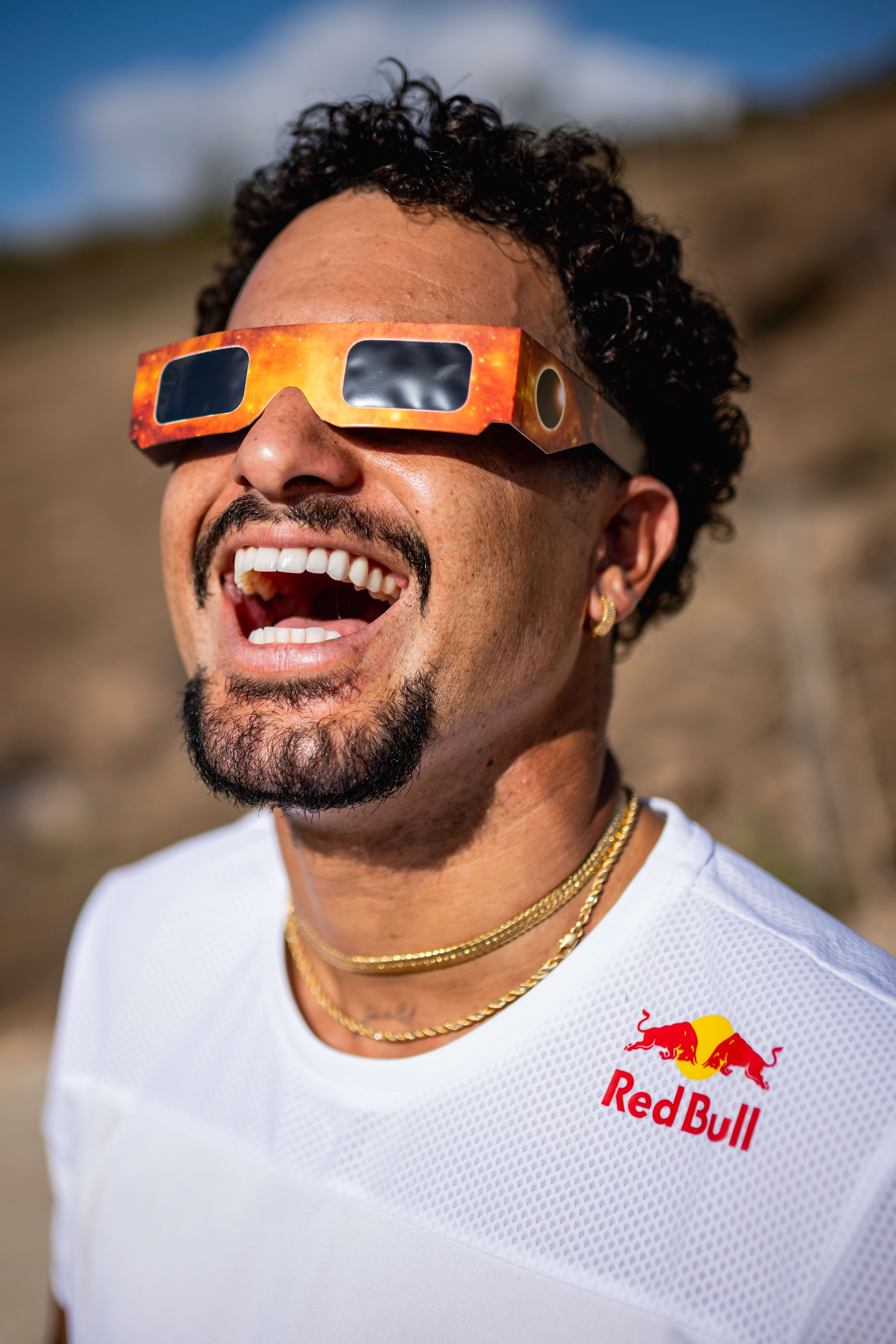 Enquanto a lua se posicionava entre a Terra e o Sol, Maragni estava há mais ou menos 1 km de distância do Italo. Com a ajuda de rádios de comunicação, celulares, óculos de proteção e espelhos para conseguir fixar os olhos contra a luz do sol, ele fez o clique perfeito. "Foram tentativas trabalhosas de encontrar um local com a angulação de azimute, que é um ângulo em relação ao norte e com uma inclinação específica de altura", explica Maragni. "Também usei os celulares pra simular um teodolito, que é um equipamento de medição de relevo, coloquei um filtro de densidade neutra na lente pra diminuir a luz que entraria na câmera e usei espelhos pra refletir a luz do sol e iluminar o atleta e evitar o efeito de silhueta que o sol costuma causar”, conta.