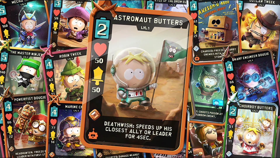 This game can turn anyone into a mobile junkie and entice even the most frugal gamers with (totally unnecessary) in-app purchases. South Park: Phone Destroyer is a free-to-play mobile game that is entirely online, with a unique real-time strategy game feature that is uncommon in most CCGs. Where and when you place your characters has a huge impact on whether or not you win games. Tanks like Manbearpig go in the front while Ranged characters (Pope Timmy) will serve you best if you keep them in the back. Your other units, Assassins (Four-Assed Monkey) and Fighters (Sexy Nun Randy) are best somewhere in between.