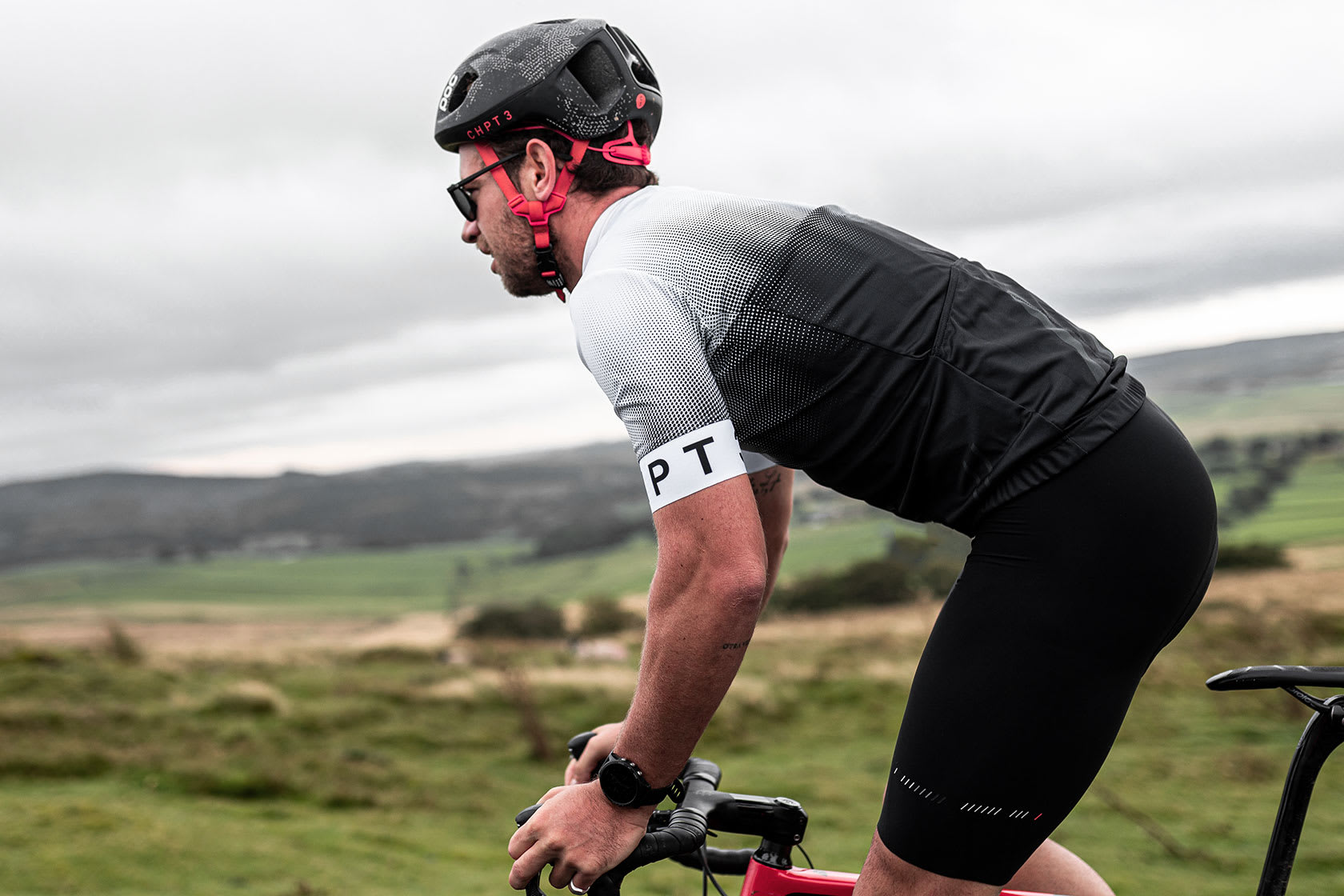 Picture a panda. A suave panda. Not one of those bumbling viral video pandas always falling off logs. So, picture a suave but summery, stealthy panda dipped in ink and riding a bicycle. Give that panda a graduated fade design and some smart technical features. Now, imagine that panda was a jersey. What you’re picturing is probably nothing like CHPT3’s Fragile jersey, but luckily, this piece of super-smart cycling apparel is much better.