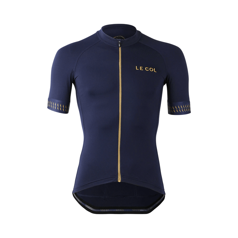 Stylish navy with gold detailing makes this jersey from Le Col the immediate go-to choice for anyone who appreciates a simple-done-well design.
