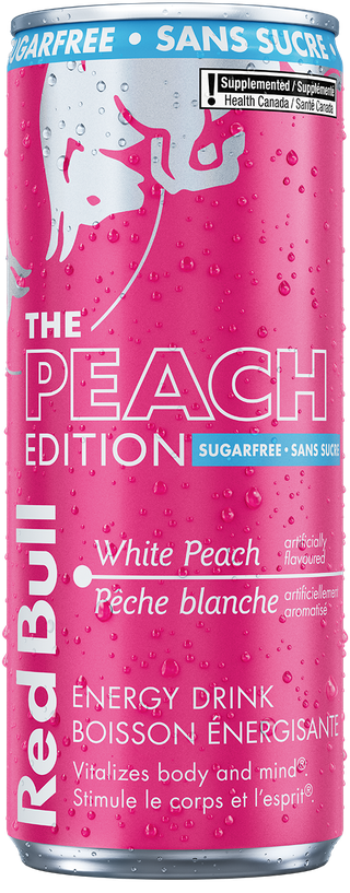 Red Bull Peach Edition Sugarfree contains 80 mg of caffeine per 250 ml can. This is about the same amount as in a cup of home-brewed coffee.