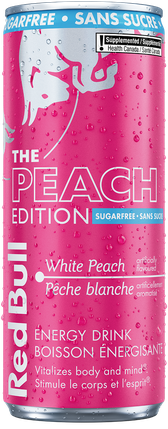 The Red Bull Peach Edition Sugarfree offers the taste of white peach with a touch of citrus peel and floral notes.