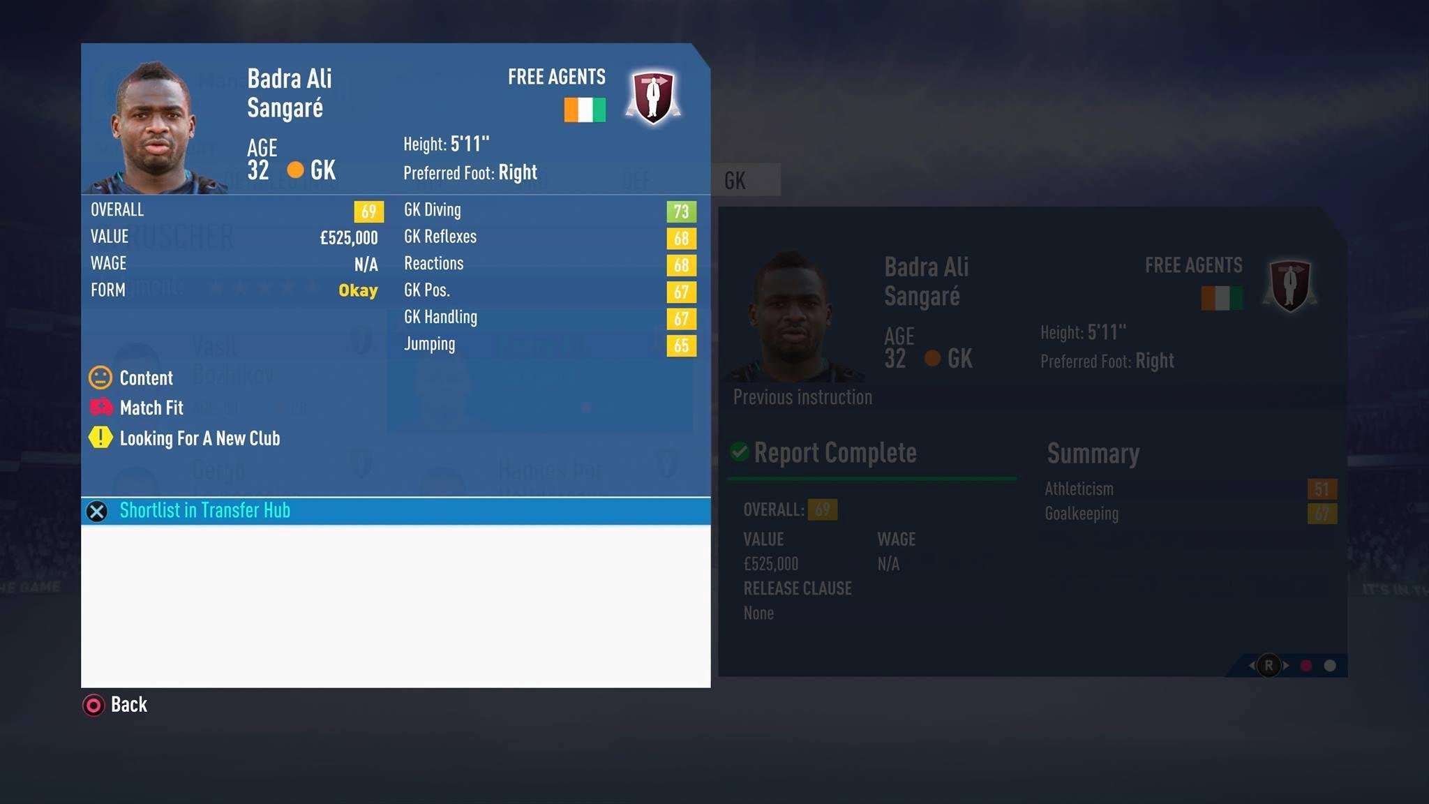 The other goalkeeper we can recommend for free is Badra Ali Sangaré, a 32-year-old stopper from the Ivory Coast. He represents Free State Stars in real life, a South African team in the top flight. He’s rocking 73 Diving, 68 Reflexes and 68 Positioning in FIFA 19 so if you don’t fancy or can’t get Halldorsson for any reason, Sangaré is another great option.