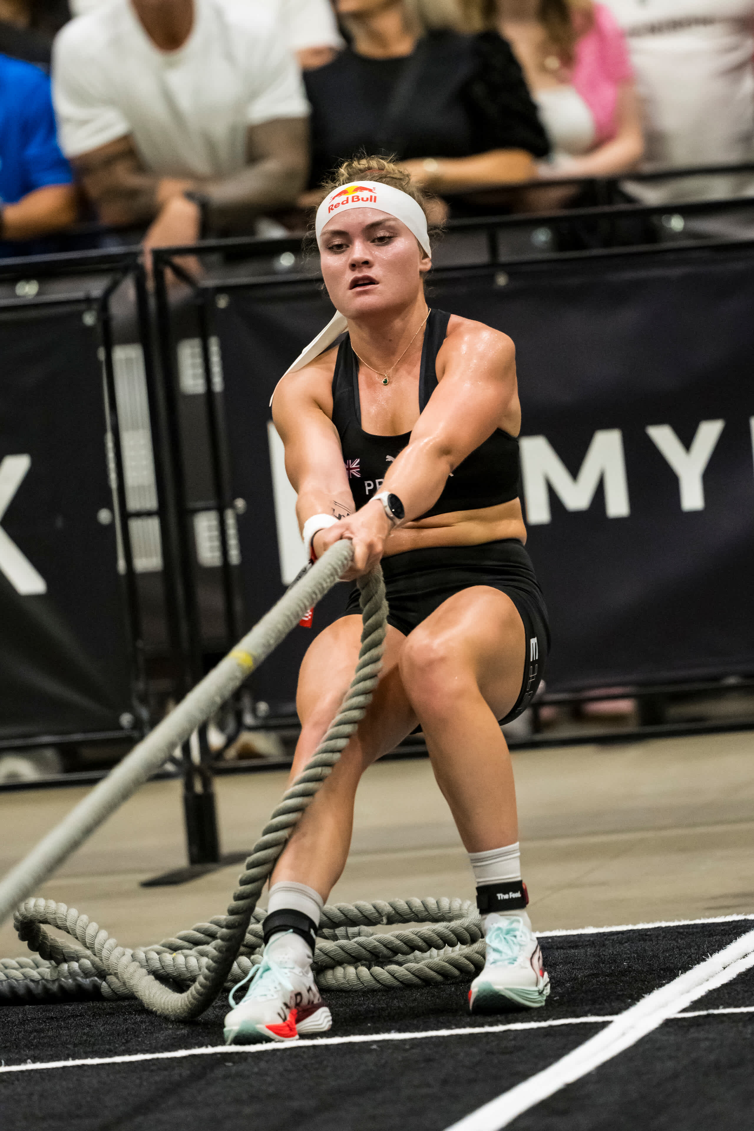 Lucy Procter showcases her strength pulling ropes at the HYROX World Championship in Chicago.