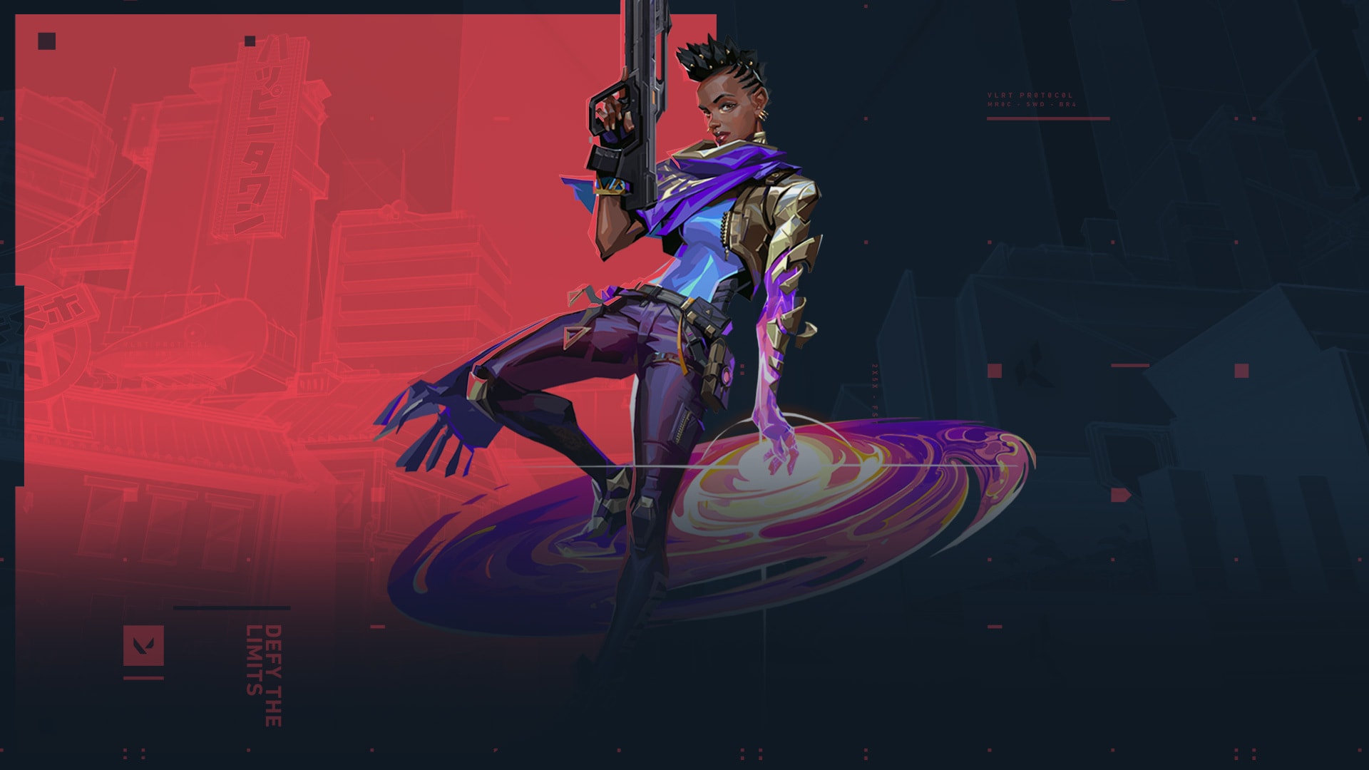 Flashy and fast, Jett dashes across the battlefield in a blur. Her kit is full of mobility that allows her to bypass obstacles and attack enemies from above.