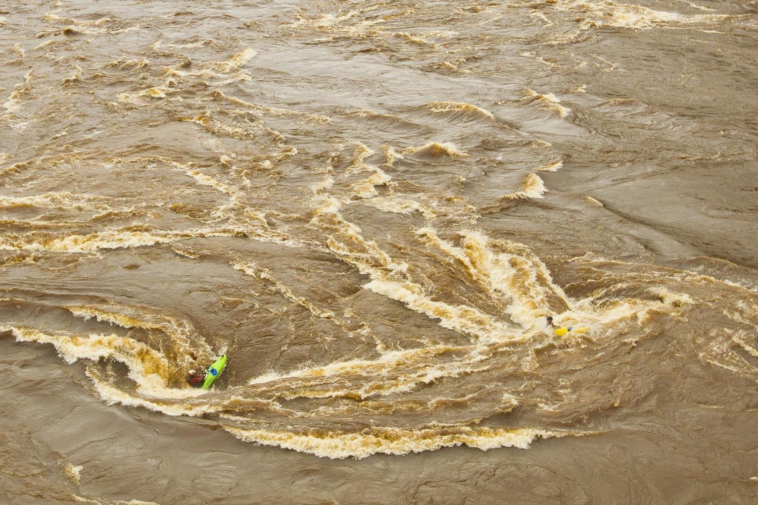 I was on a first descent on the Congo River back in 2011 with Steve Fisher and Rush Sturges. At one point the pair of them got sucked into two opposite-rotating whirlpools simultaneously, it was really neat.