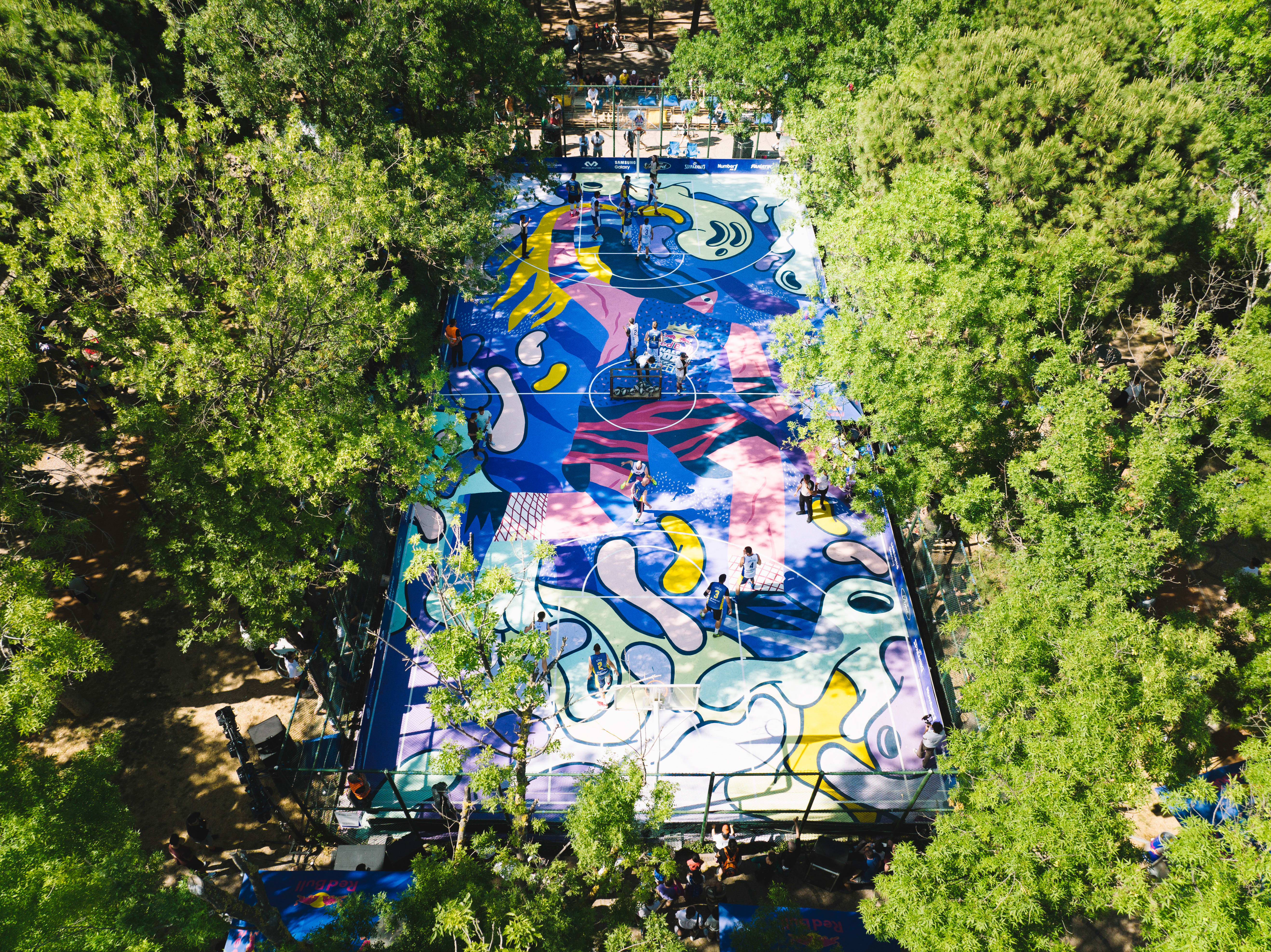 Still in Turkey, Red Bull Half Court organisers partnered with the Mural Istanbul festival to transform three of the country's courts. Designer and muralist Max On Duty took inspiration from local legend Sinan Güler for his revamping of the court in Istanbul's Abbas Ağa Park. In Ankara, graffiti artist Esk Reyn created a masterpiece of colours and angles on a court in the city's Anıttepe Park. While in Bursa, street artist Mr. Hure was responsible for the abstract creation at Hüdavendigar Kent Park.