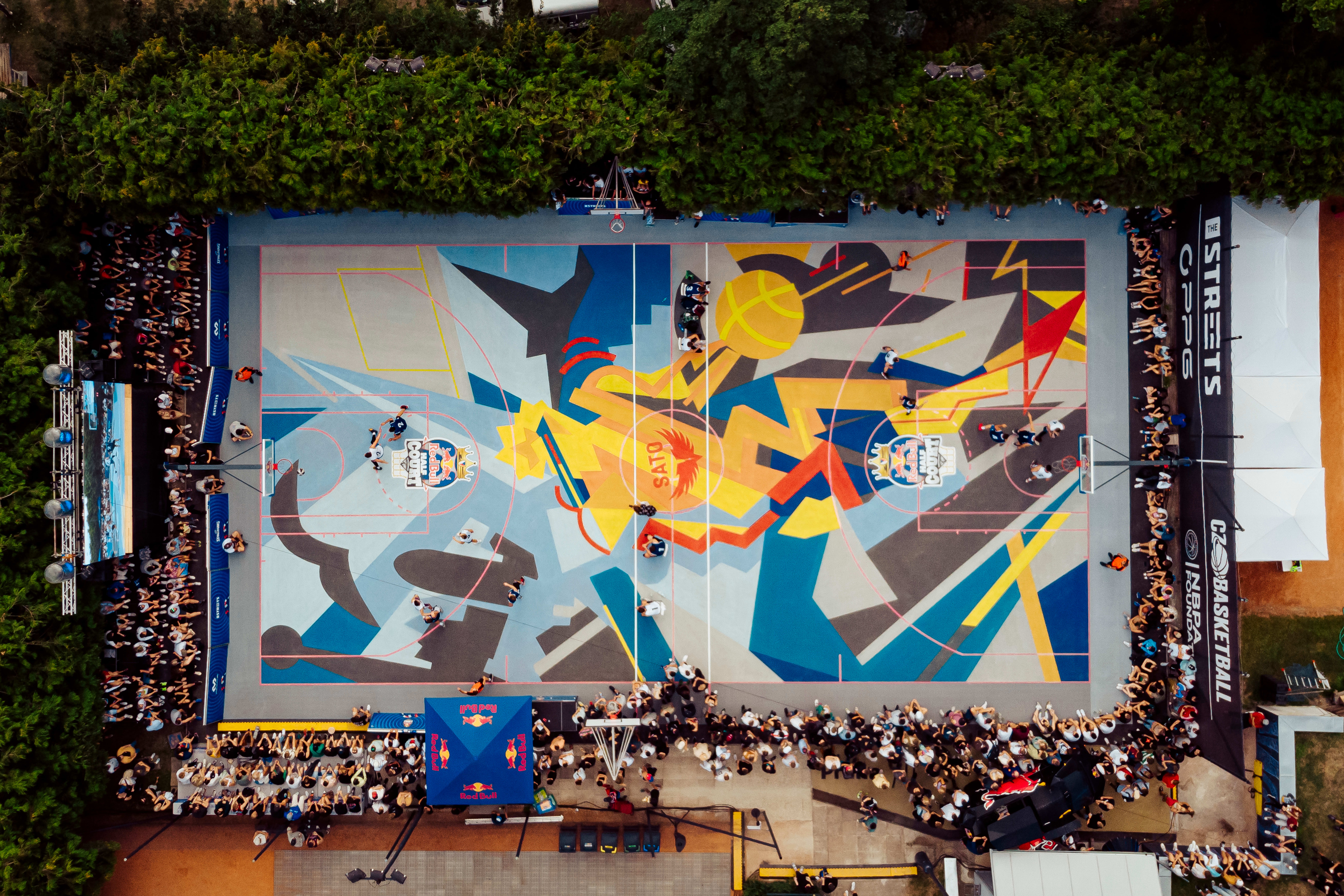 Italian artist PISKV [real name Francesco Persichella] was instrumental in giving new life to a court in Rome's Scalo San Lorenzo neighbourhood. PISKV worked with volunteers from the local community to design new artwork. It features a player dunking a basket within the grounds of Rome's famous Colosseum. The finished painted court is one of the largest in Europe at around 800-square metres. The court was used for the 2021 world finals of Red Bull Half Court that took place in Italy's capital city.