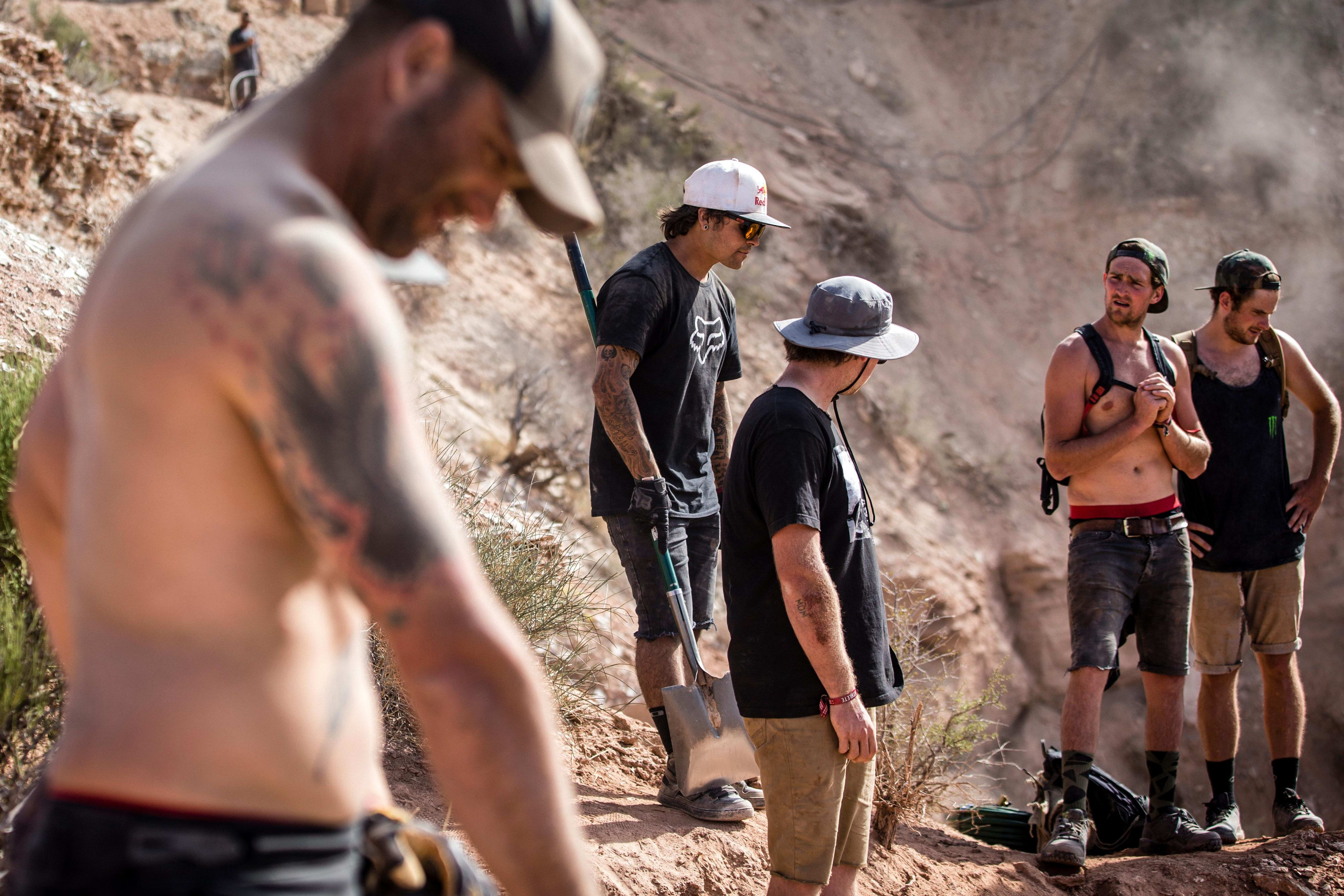 A rider is allowed a team of two mates to help him dig, but isn’t allowed any power tools or external material, except for sand bags. Generally there are three days of just digging at Rampage and an additional four days for the riders to get on their bikes to test lines and jumps. In those latter four days, they can continue to dig and reshape lines. Sometimes athletes join together to share the lines they'll use in competition and so can pool their digging resources together.