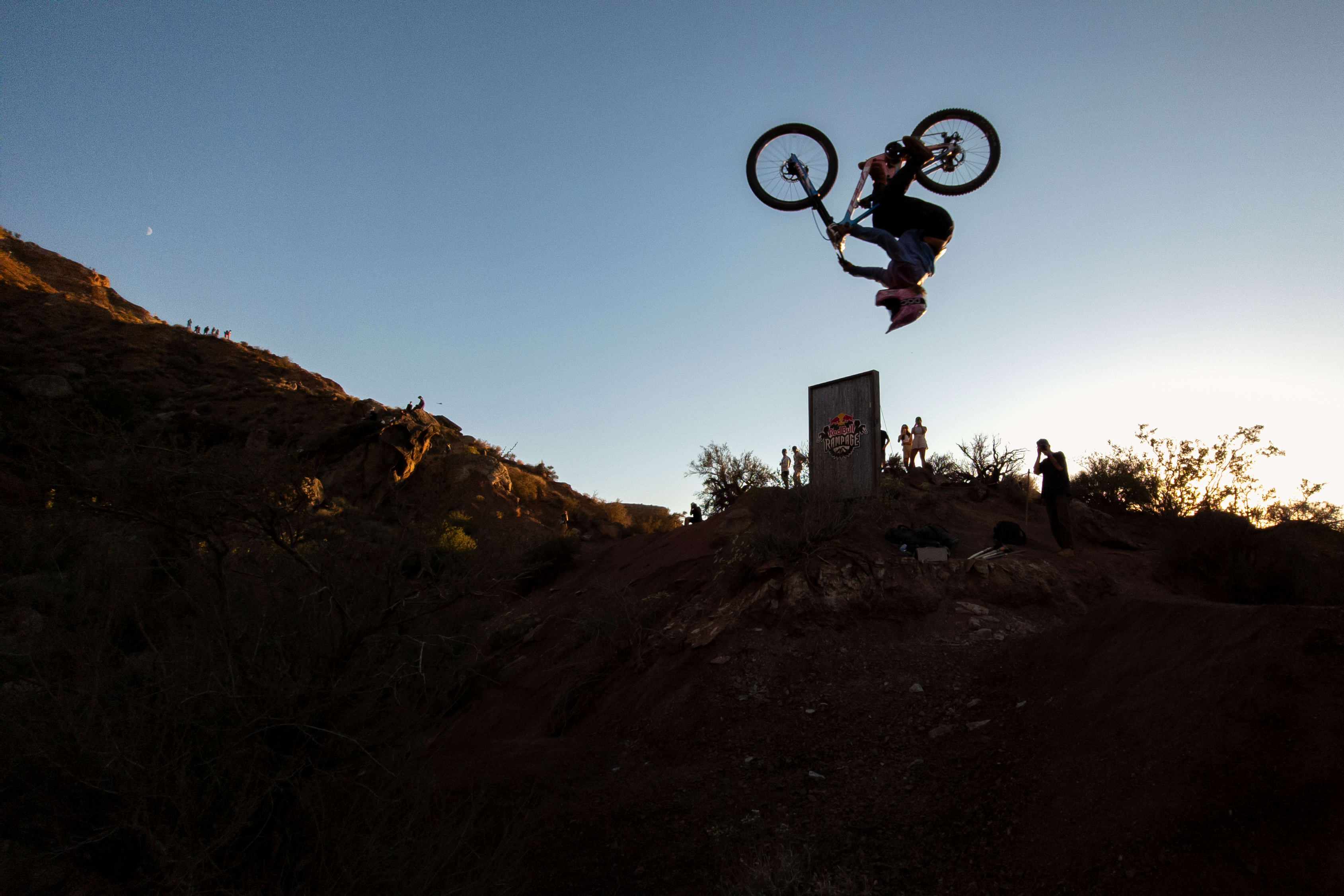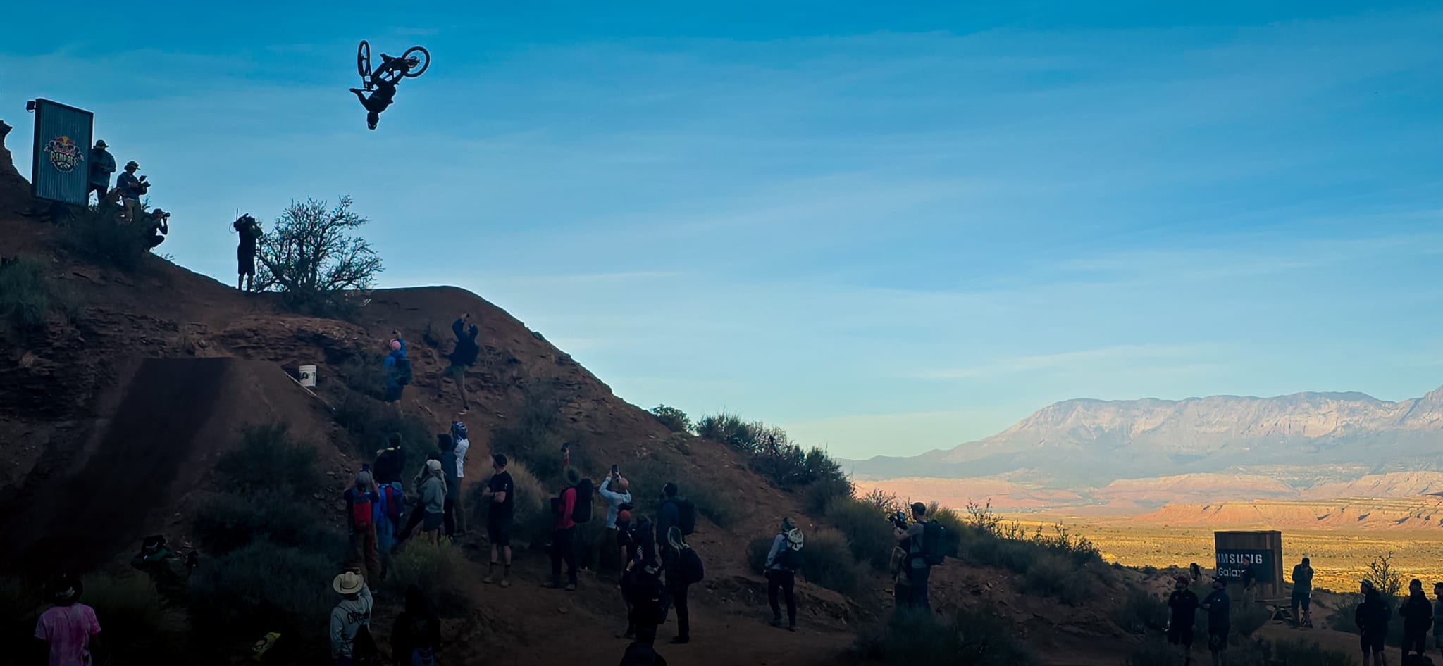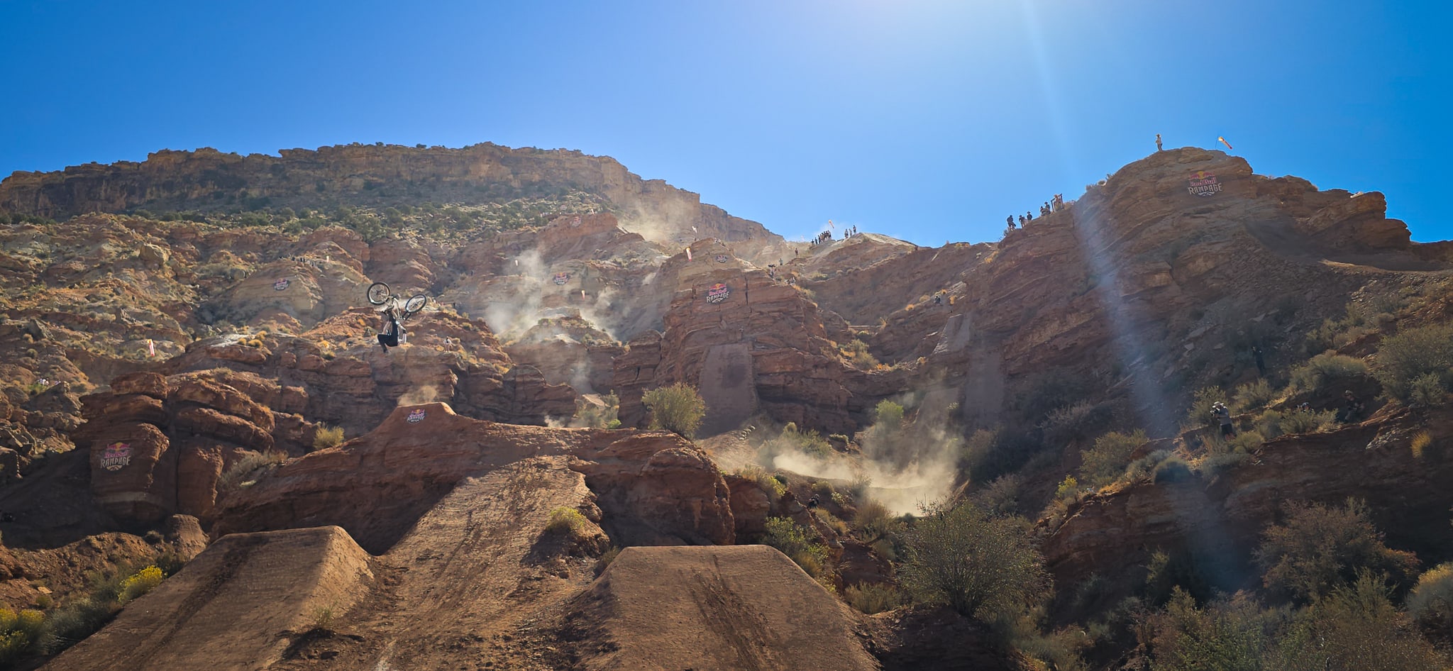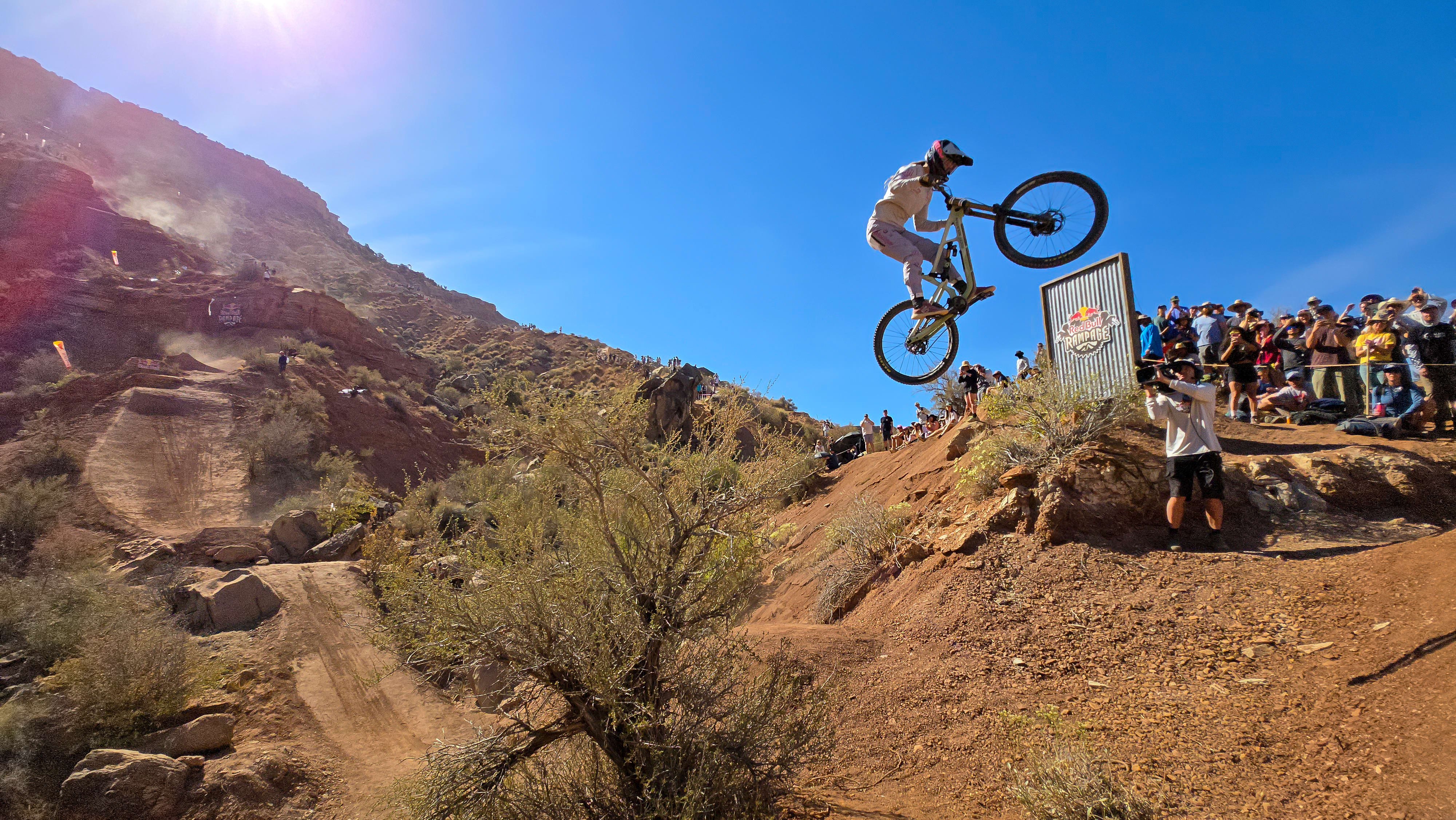 The desert landscape of Red Bull Rampage is a dynamic workplace. Getting the shot means navigating the harsh and exposed terrain of the venue, all while not missing a rider when they drop in.