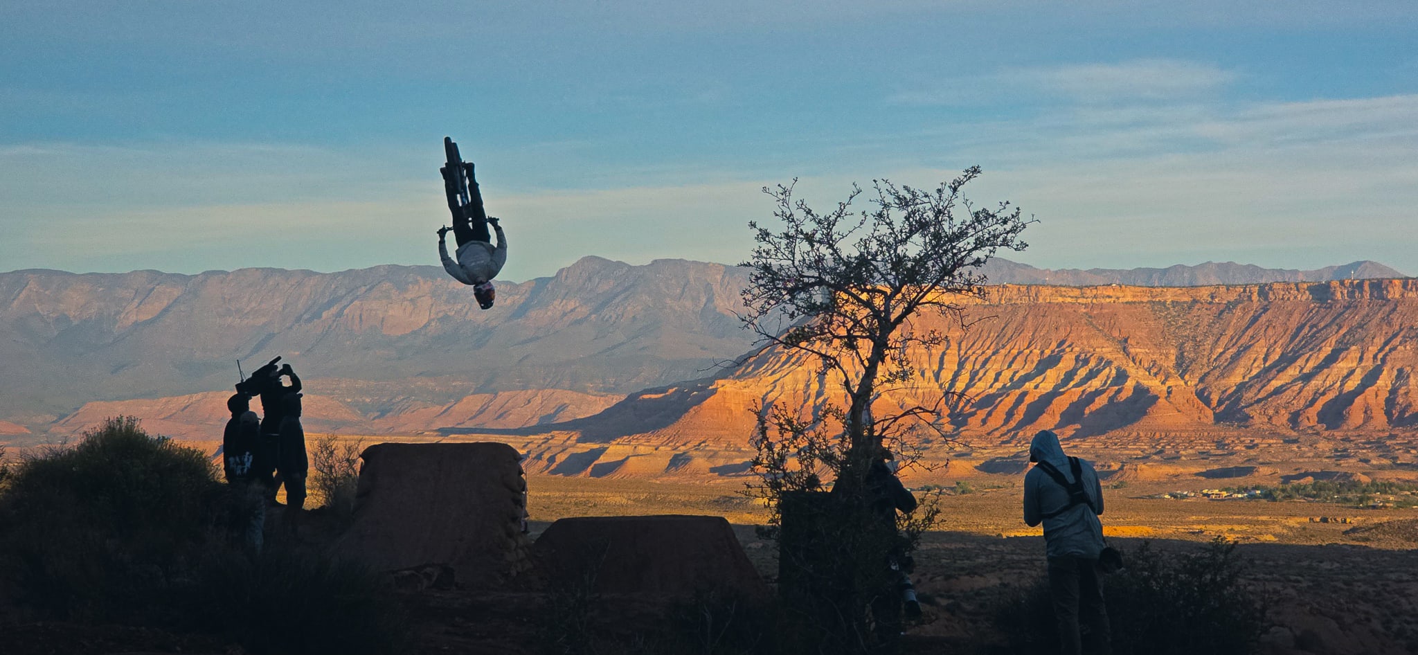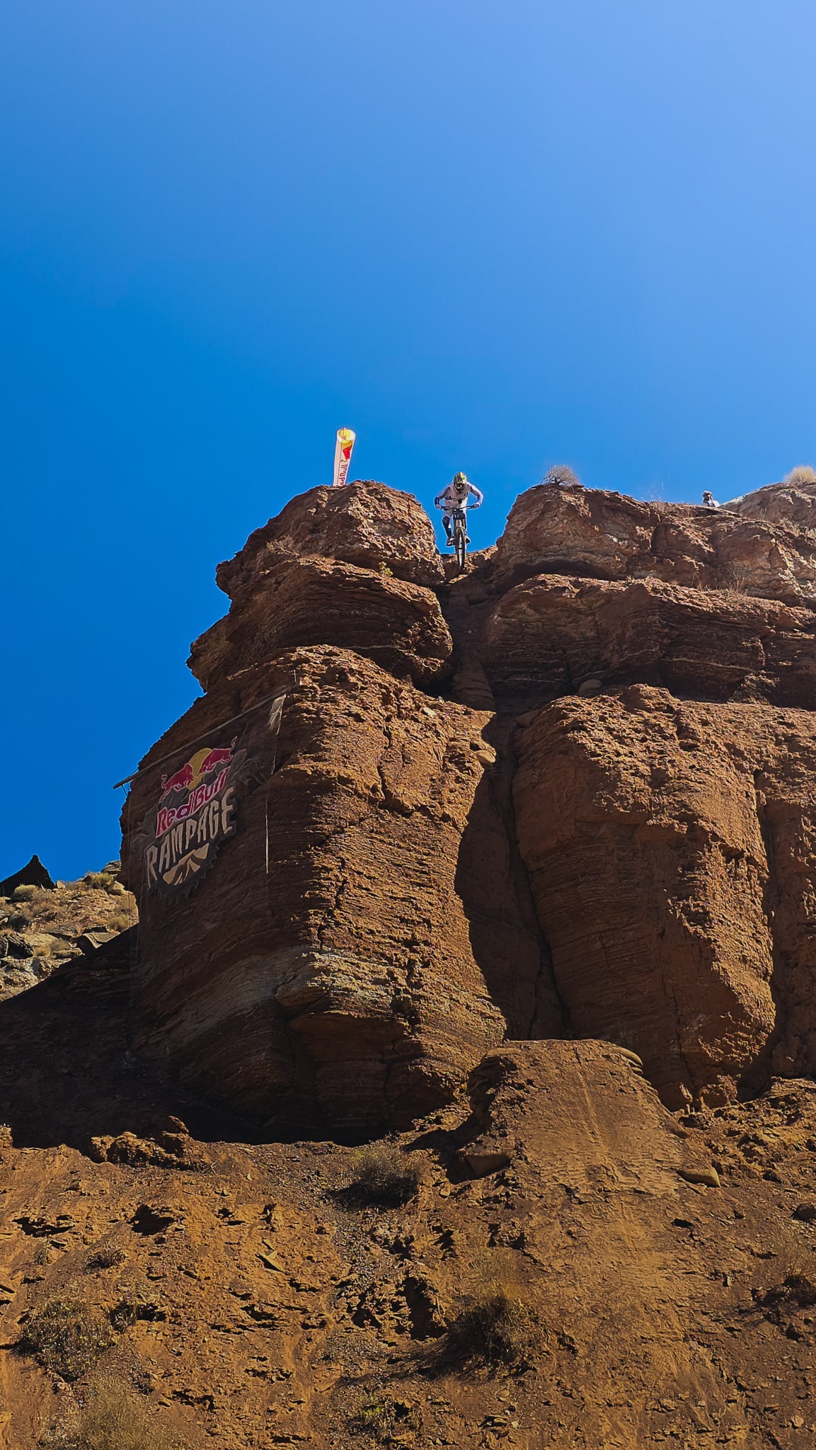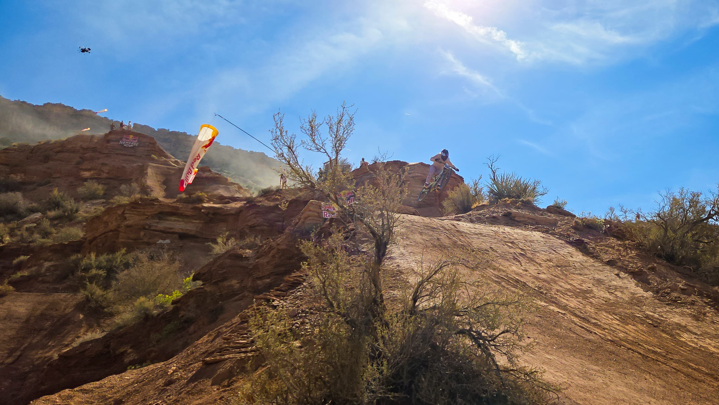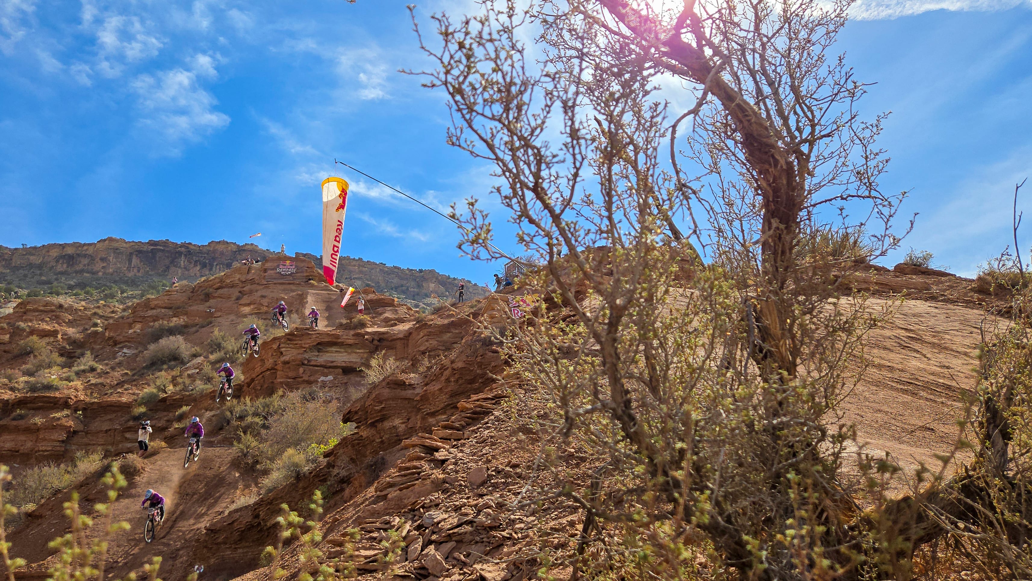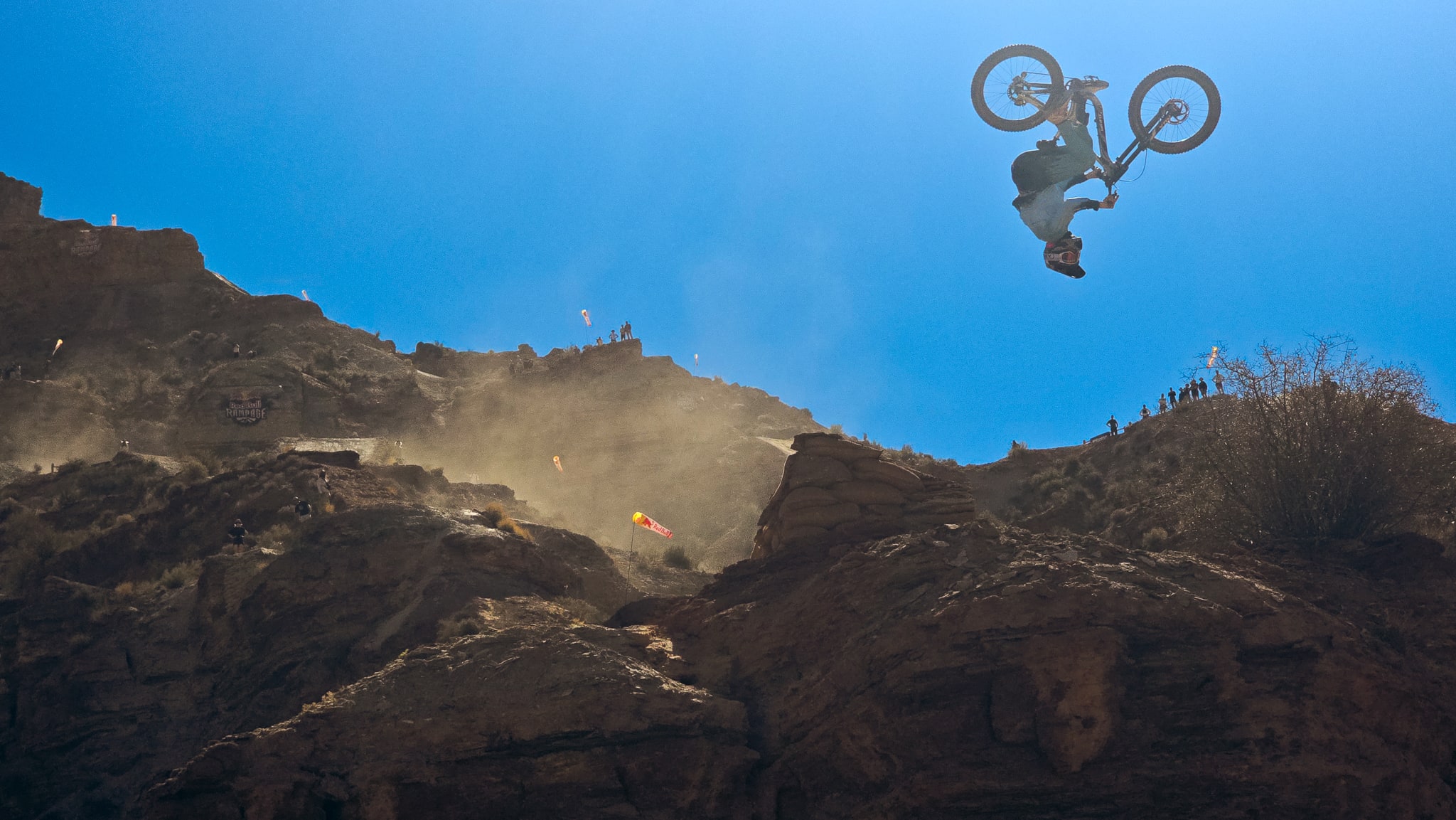 The desert landscape of Red Bull Rampage is a dynamic workplace. Getting the shot means navigating the harsh and exposed terrain of the venue, all while not missing a rider when they drop in.