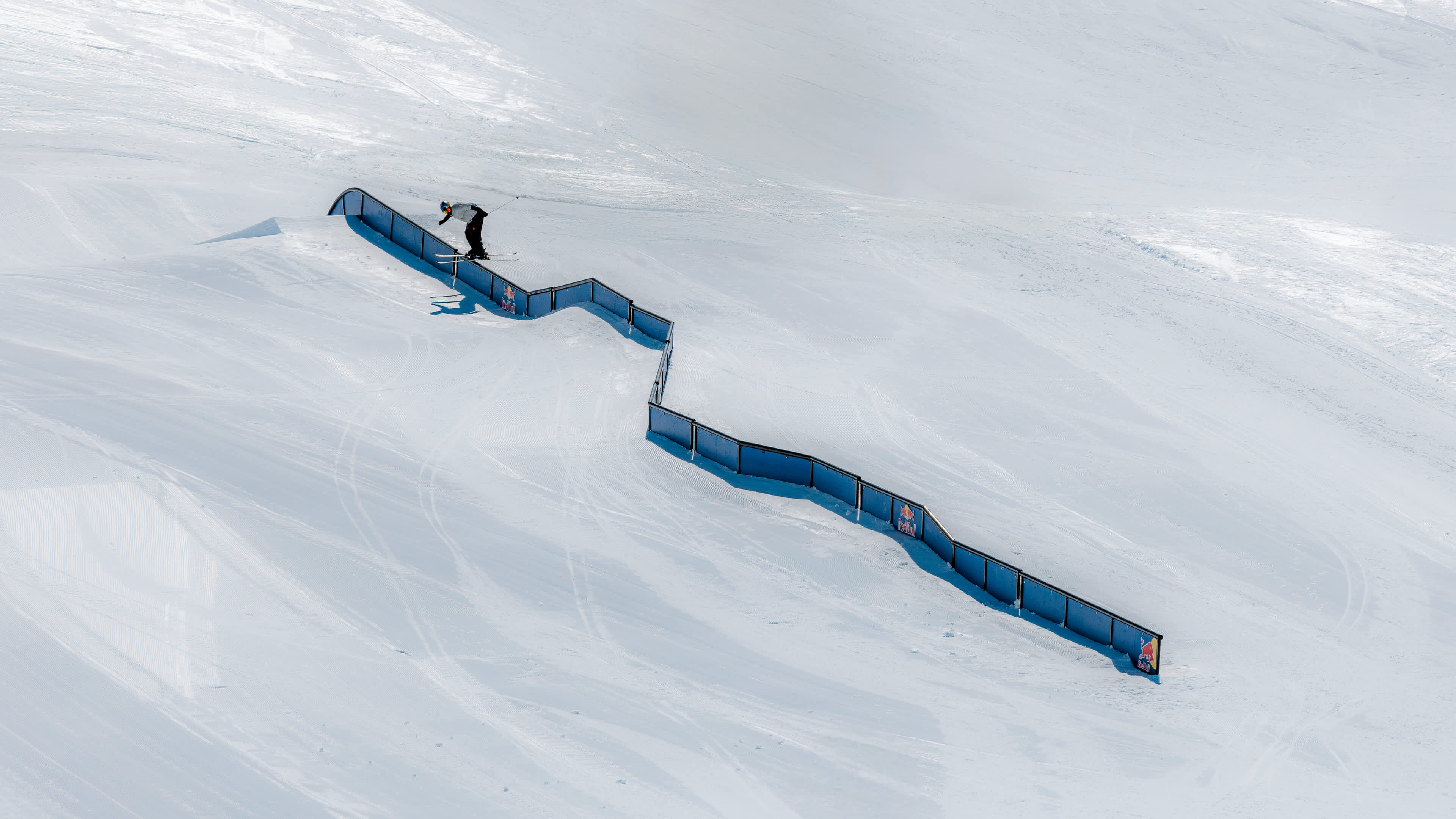 There's more freedom outside of the major comps, but if there's a title or medal on the line, the course will often have snow walls to shelter athletes from the wind and a minimum of six different areas, divided between an upper section based on 'jibbing' – think rainbow rails, up-flat-down rails, transfer boxes – and a lower section favouring jumps with plentiful kickers or ‘booters’ to help athletes get air and score with flips, grabs and more.