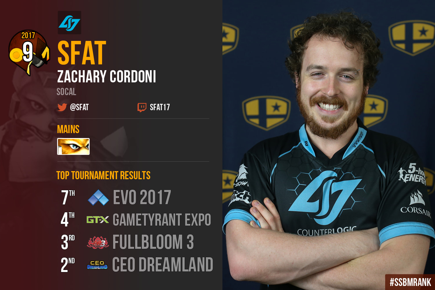 It is a good year to be Zachary “SFAT” Cordoni. Hailing originally from Northern California, SFAT relocated to Southern California with an insatiable hunger for victory. Though some were surprised at the relocation given SFAT’s extensive history within NorCal, it proved enough to reinvigorate his play and help him maintain his presence within the Top 10 of the SSBMRank list.