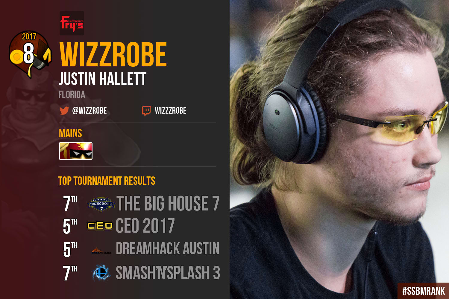 In the age of all top players having a Fox for a Jigglypuff matchup, Justin “Wizzrobe” Hallet remains one of the few players to stick to his main regardless and be successful at it. Wizzrobe has pushed his main, Captain Falcon, to a new level.