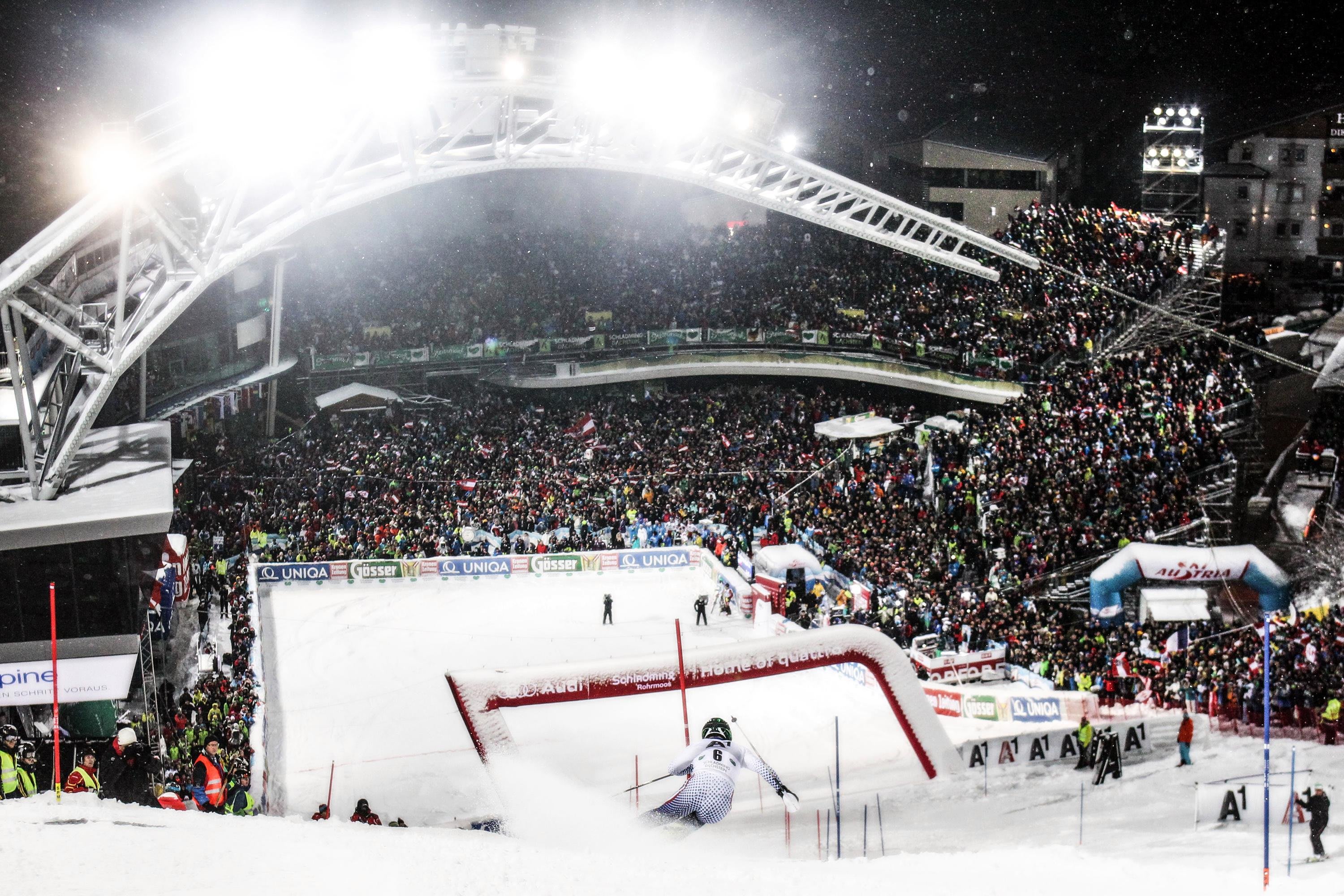 4. Schladming, Austria The Schladming night race is a brilliant celebration for more than 40,000 fans and the world’s best slalom racers. The hill glows red with flares and boasts an atmosphere second to none. The 2016 event will rock the town on January 26.