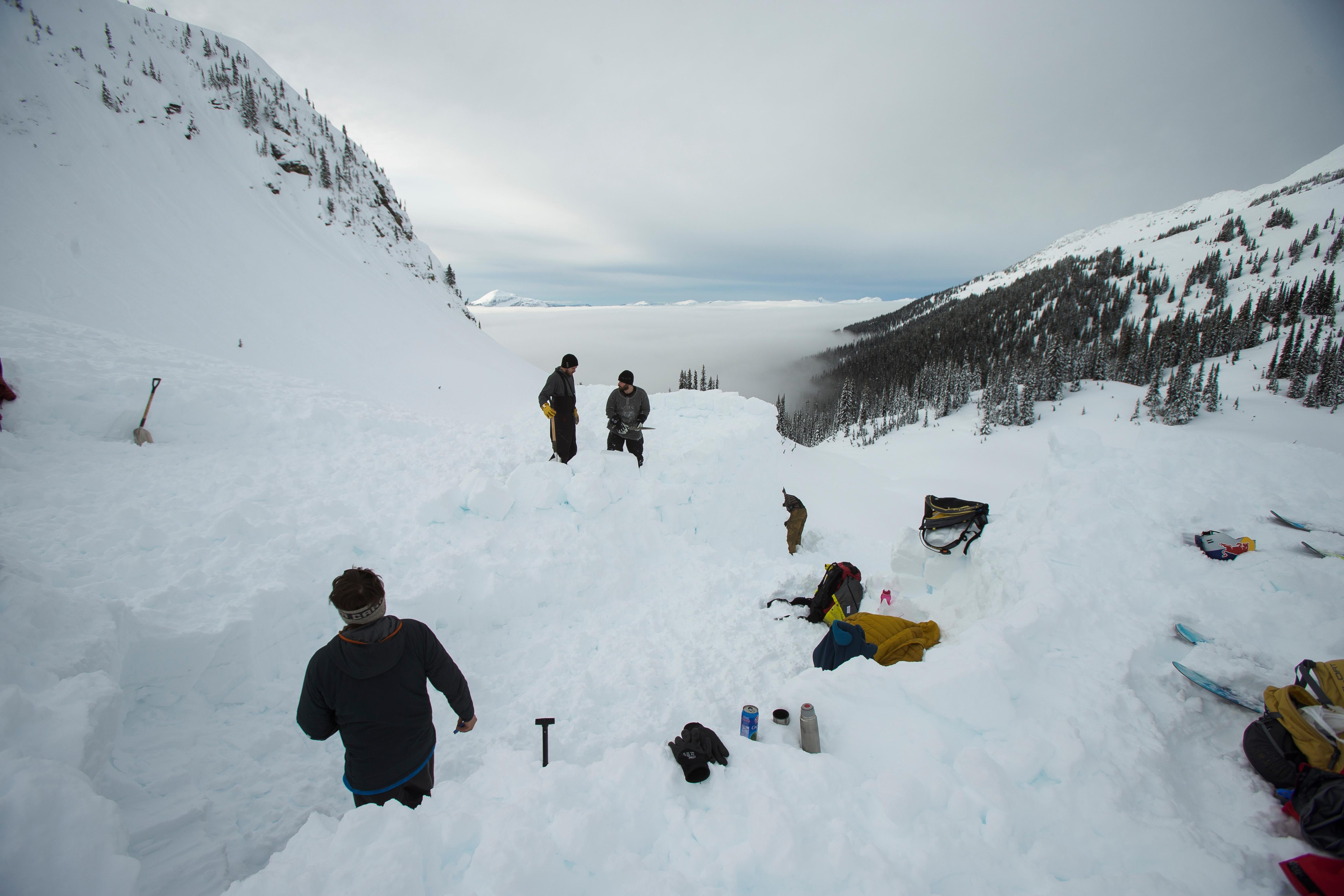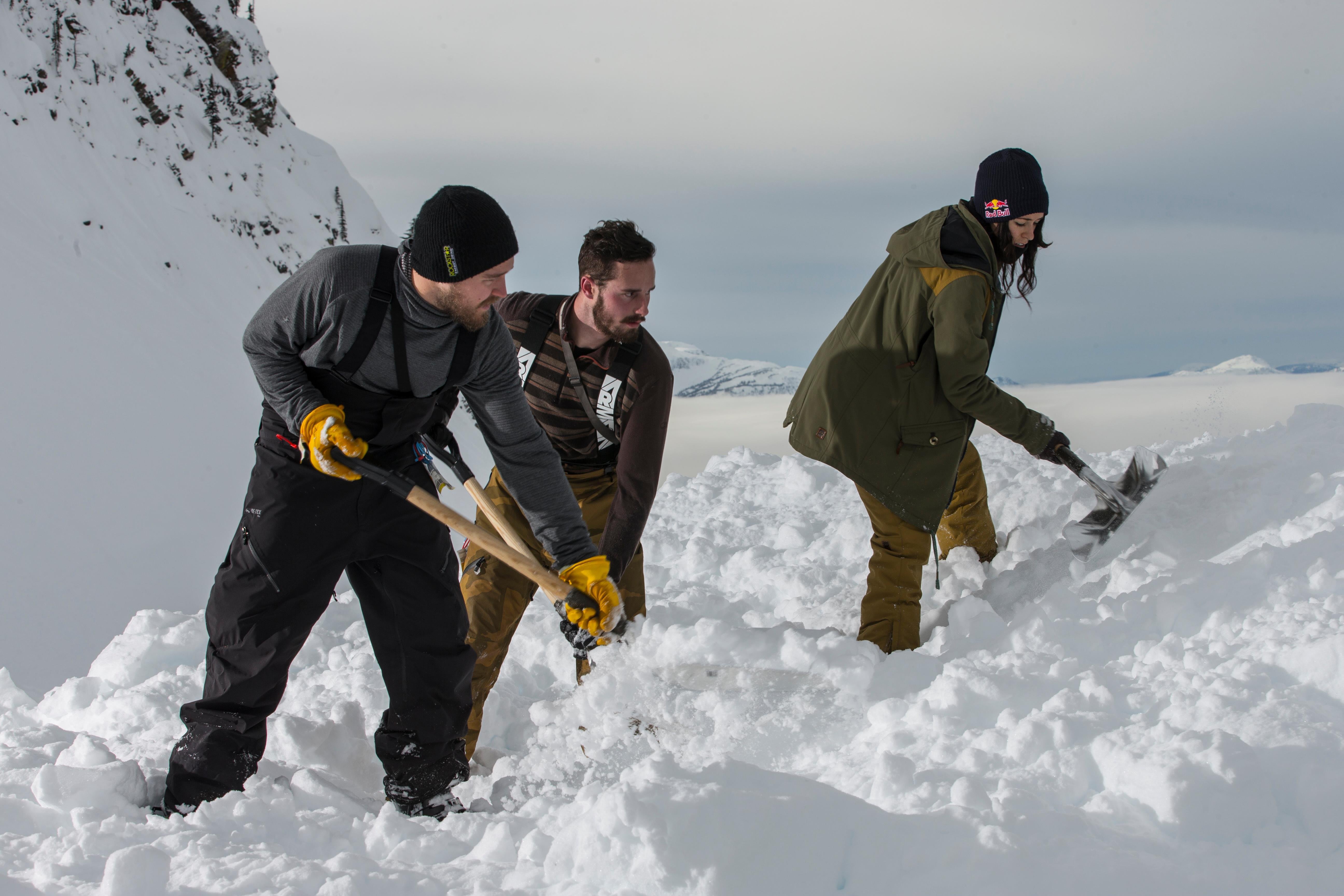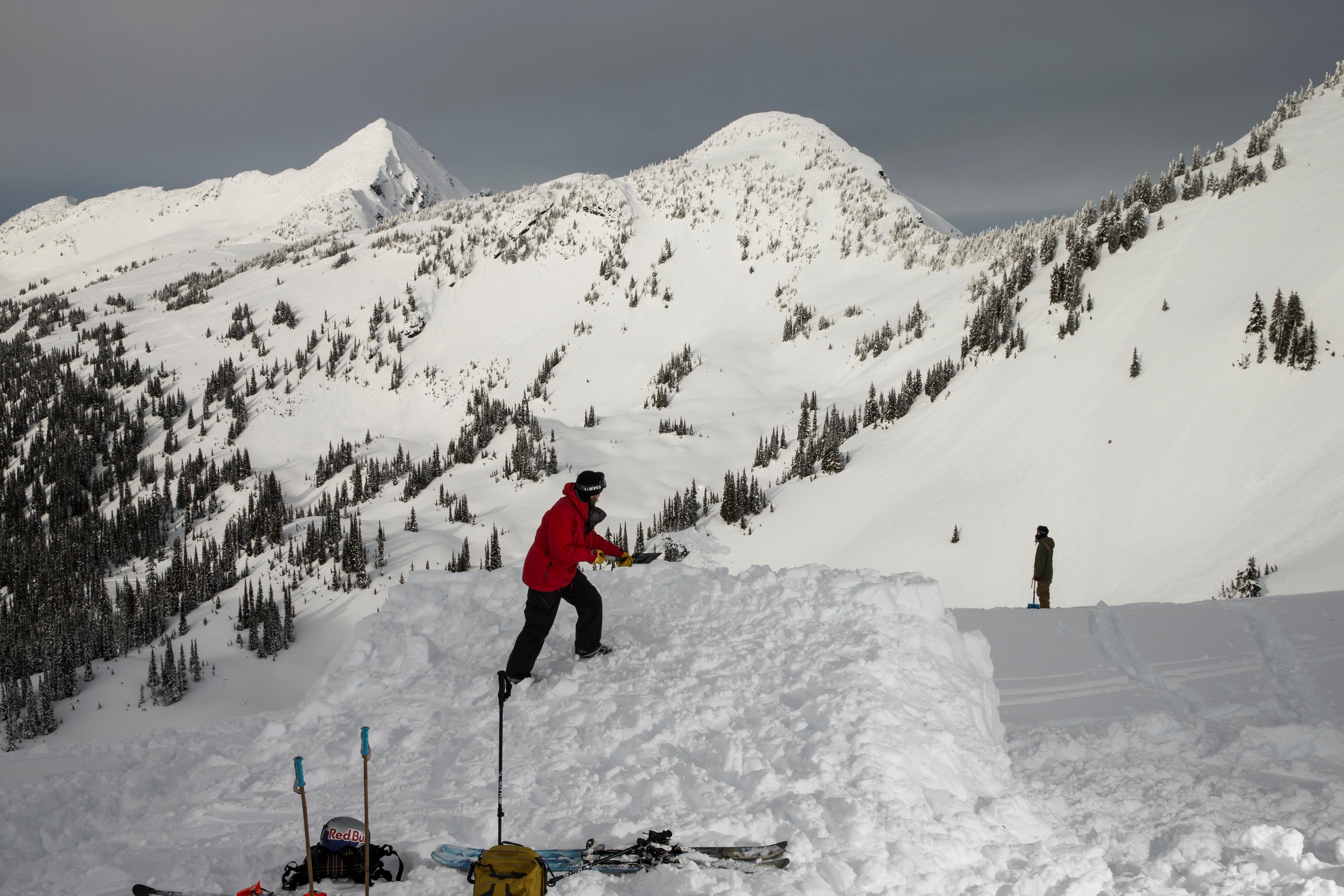 Tasked with the job of preparing the venue is veteran builder/freestyle skier Riley Leboe who has been building jumps for as long as he can remember.