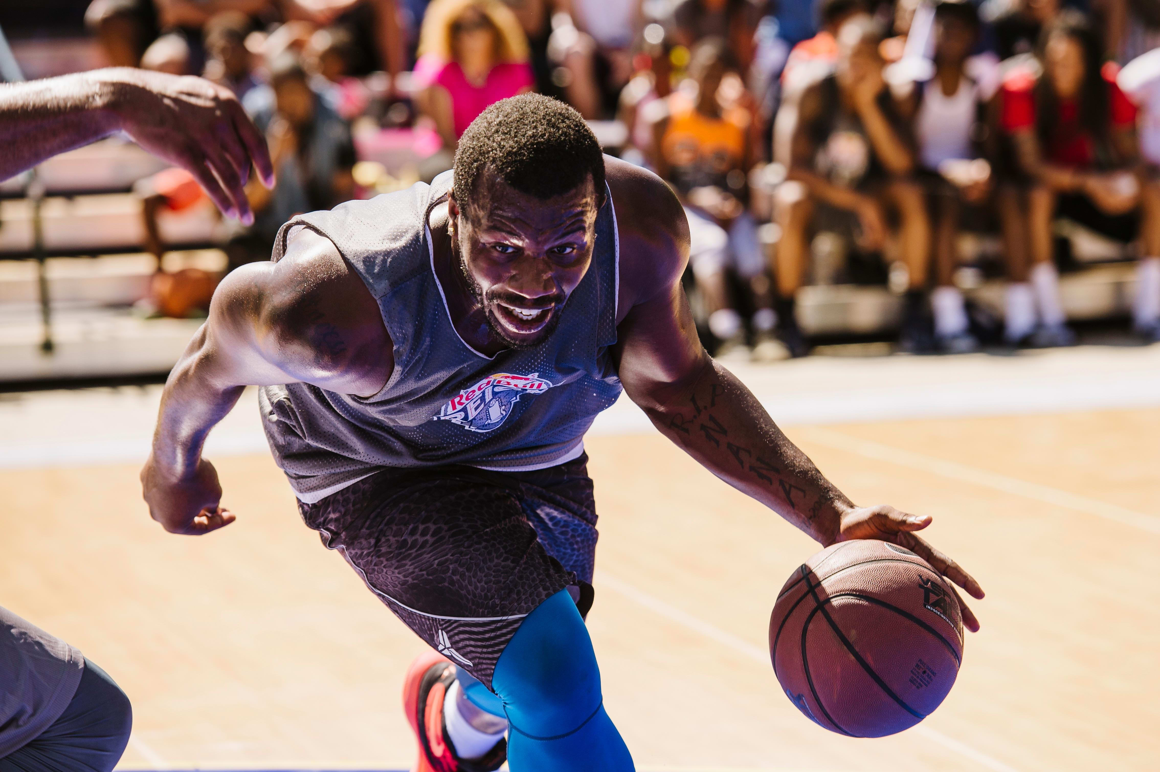 L’un des gros avantages de ce mouvement, c’est que lorsqu’on fait passer le ballon à sa main opposée, on peut attaquer d’un coup. En échappée rapide, avec un défenseur qui plonge pour s’emparer du ballon, le drible derrière le dos permet d’esquiver l’adversaire sans perdre son élan.