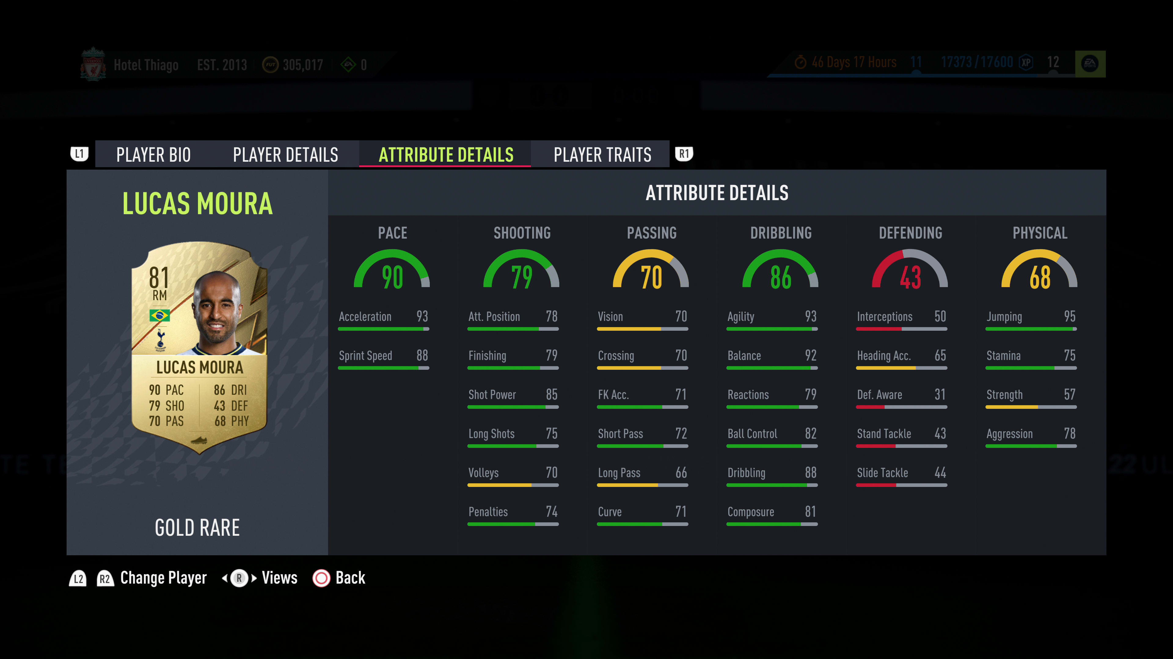 Lucas n'est plus aussi bien noté que par le passé, mais il est toujours aussi rapide. Cependant, il risque aussi d'être pas mal convoité, réputation oblige. Mais n'hésitez pas à craquer, vous aussi, ne serait-ce que pour ses 4 étoiles en gestes techniques et en mauvais pied.