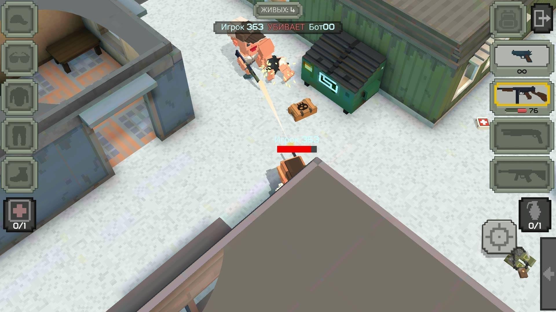 S’ajoutent à cela les largages aériens aléatoires, qui viennent créer des points de conflit additionnels où l’on se dispute des items comme des armes, des armures et des trousses médicales. Foncer partout avec notre petit bonhomme carré, accumuler de l’argent pour acheter des skins et passer en vue subjective pour une meilleure précision : tout ça est étrangement agréable. Le style dessin animé apporte aussi une touche bienvenue, et il contraste joliment l’essence violente du jeu.