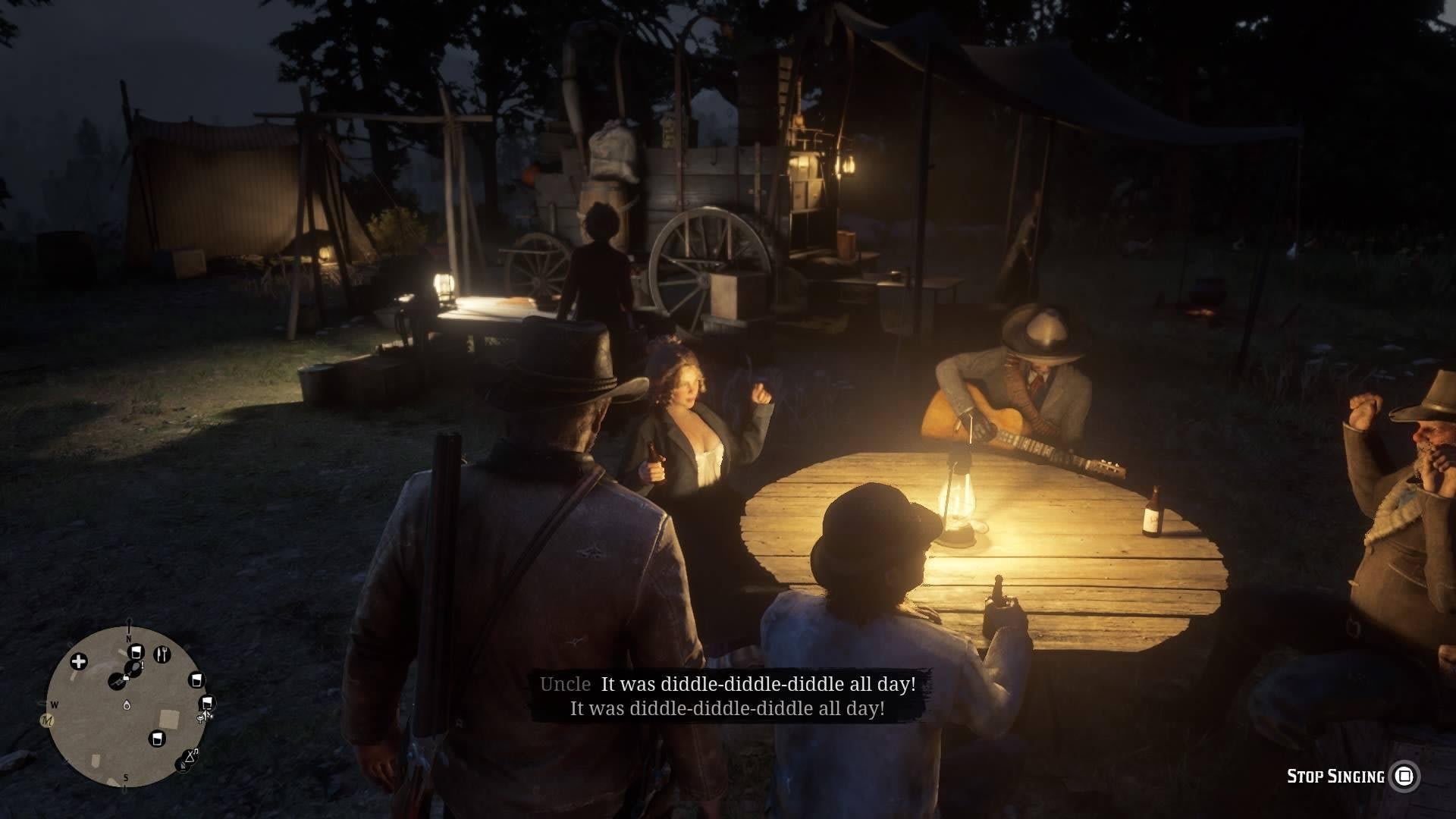 Auriez-vous dû éviter cette soirée et aller vous coucher ? Oui, et ça n'aurait pas changé grand chose. Il n'y a aucun bénéfice à y participer, à part enchainer les verres jusqu'à l'aube. Et pourtant, grâce au gameplay non-linéaire proposé par Rockstar, vous allez rester assis près du feu au lieu de préparer votre prochaine mission. Mais qui celui qui n'a jamais privilégié la procrastination nous jette la première bière.