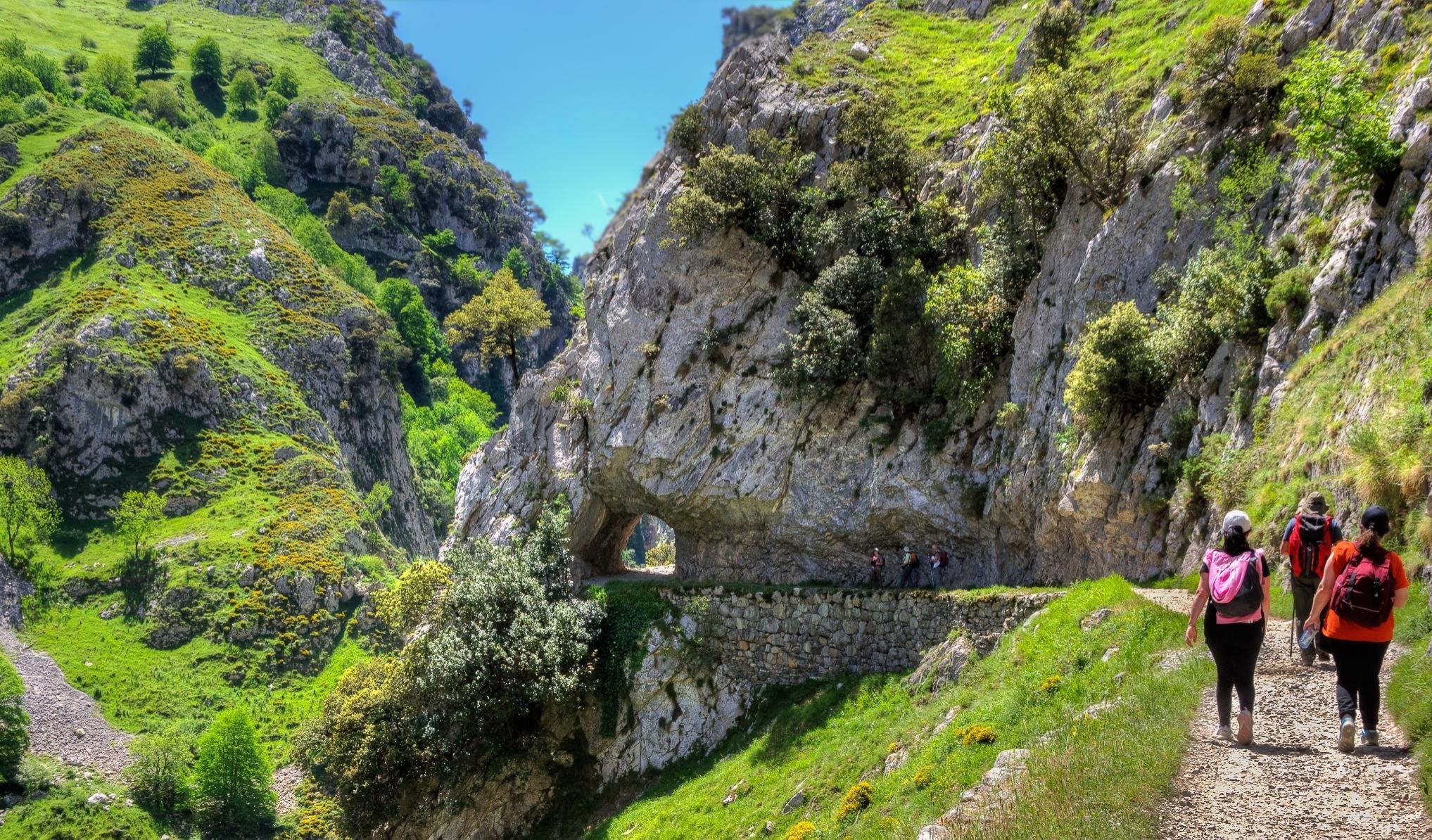 La plupart des randonneurs partent de Poncebos avec une montée de 300 m jusqu’à Los Collaos, après quoi le sentier devient plutôt plat. Ce dernier est creusé dans les flancs escarpés du canyon, traverse des ponts et des tunnels de roche sculptées à la main à travers la vallée étroite qui mène à Cain. Là-bas, les randonneurs peuvent savourer une nourriture locale excellente avant de faire le chemin inverse.