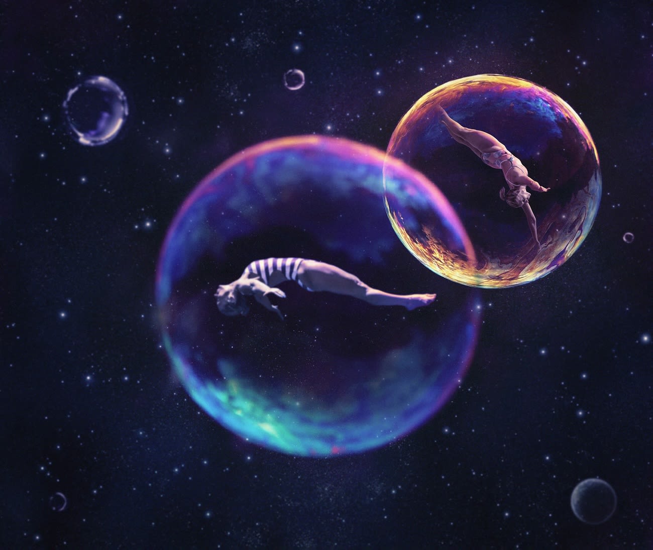 With the cliff diving photos, I wanted to incorporate something from the diver's life or personality and add my style to it. In Lysanne's case, she is a mother with a bubbly personality. Apart from the obvious – the bubbles and her poses look like she is floating in space, so I put her in the space! With Rhiannan having had a perfect season, I put her in stars, like she is bathing in them – in success!