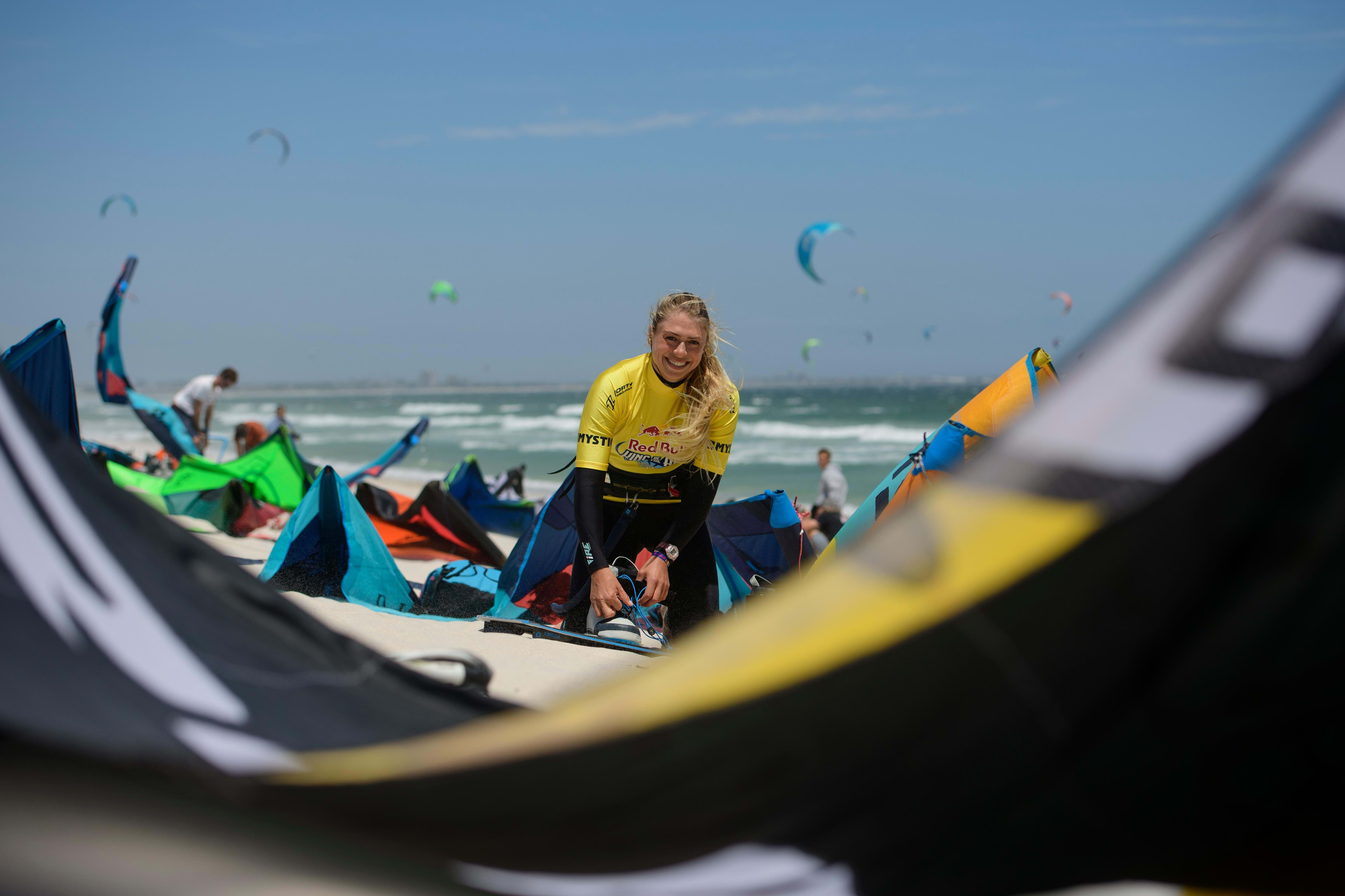 Trata de relajarte y sentir el viento y el kite con sensibilidad, no con fuerza bruta. Estar tenso, agarrar con mucha fuerza o apresurarte te impedirá hacer las cosas con intuición. La paciencia también es importante, dice la kitesurfer profesional: "Aprender a hacer kitesurf se divide en diferentes pasos y cada uno es importante para progresar, pero tienes que practicar."