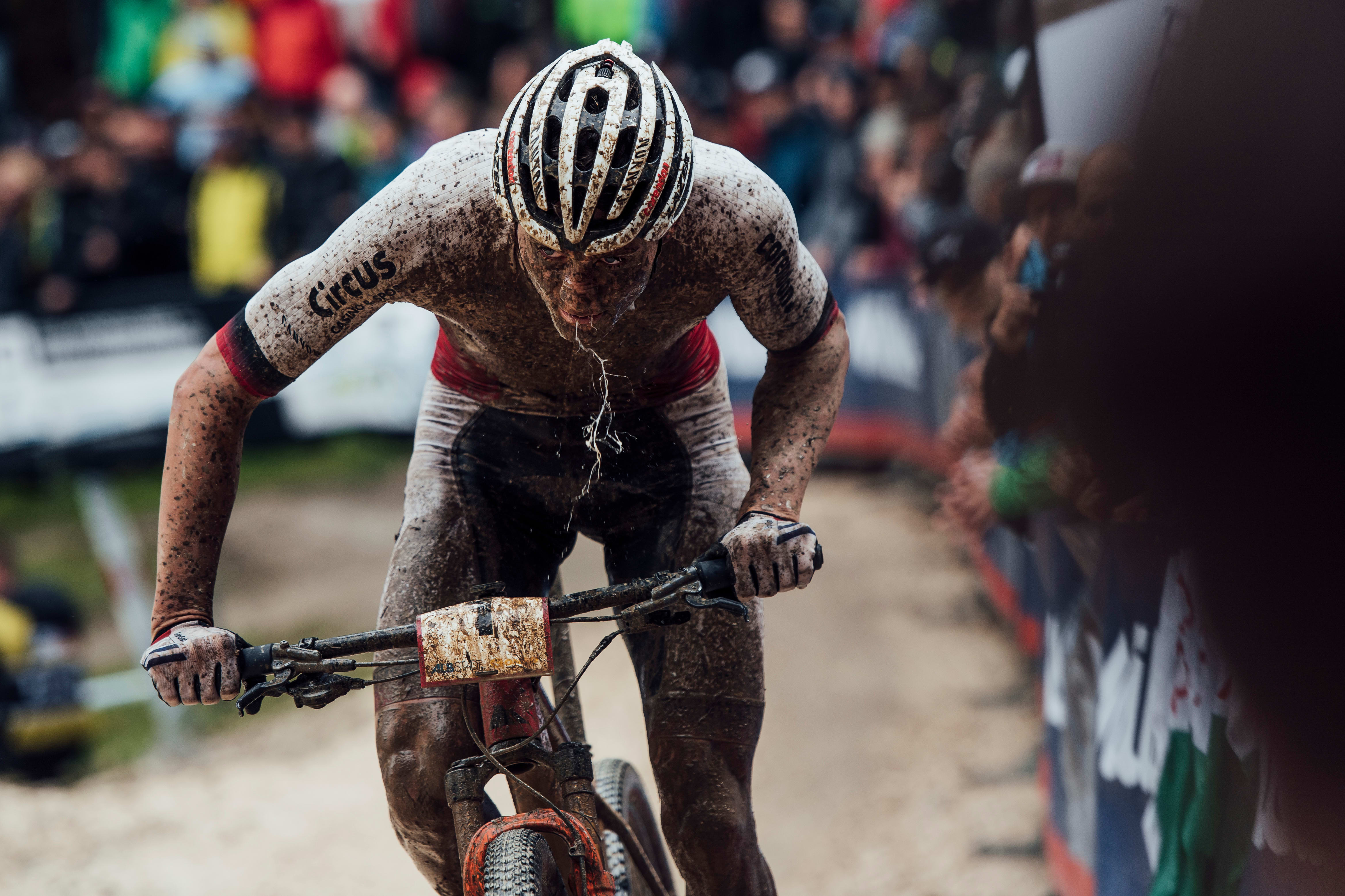 Mathieu Van der Poel durante la Copa del Mundo UCI XCO en Albstadt, Alemania, el 19 de mayo de 2019.