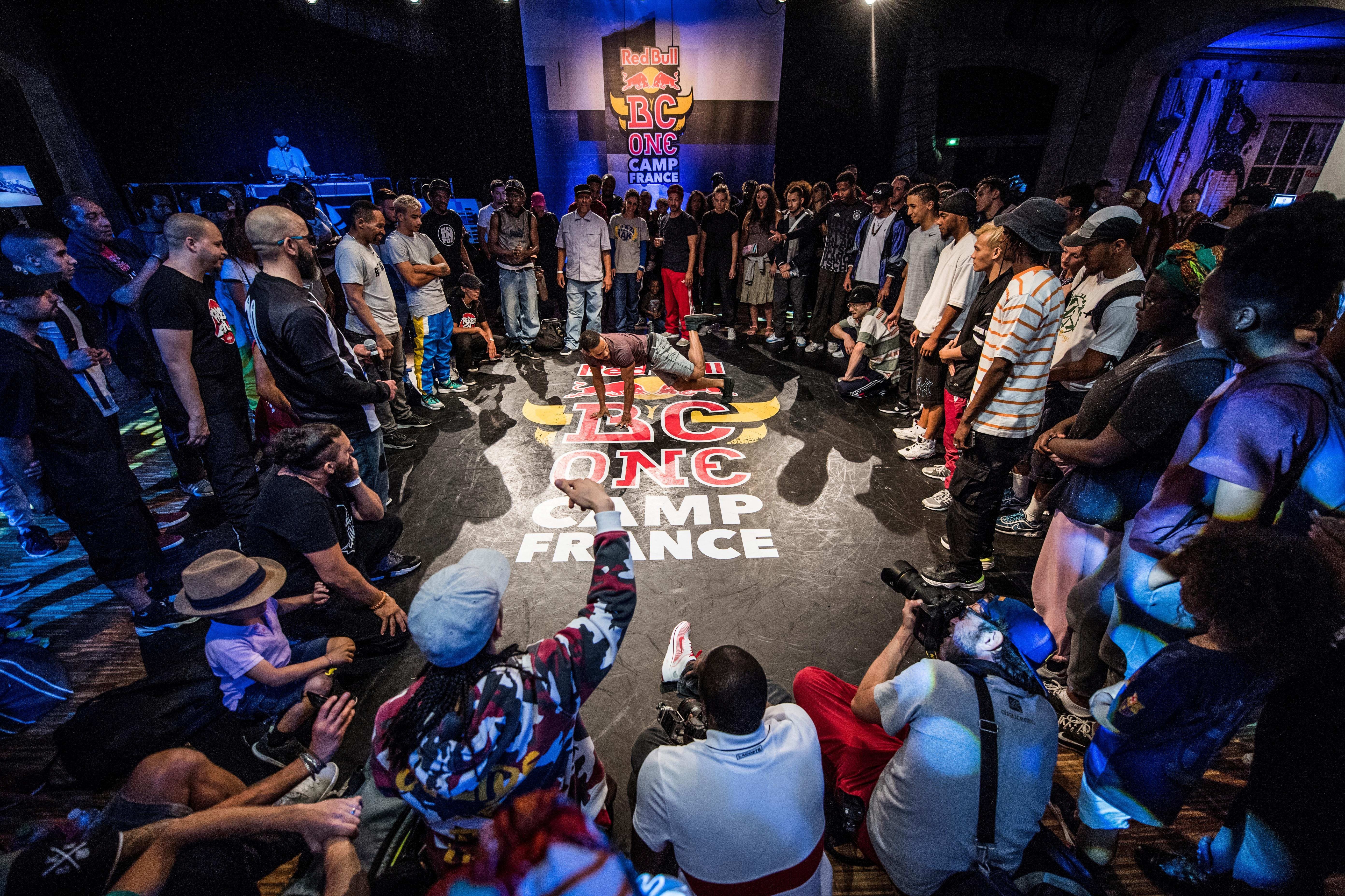 Kreise aus Menschen, die um die tanzenden B-Girls und B-Boys gebildet werden.