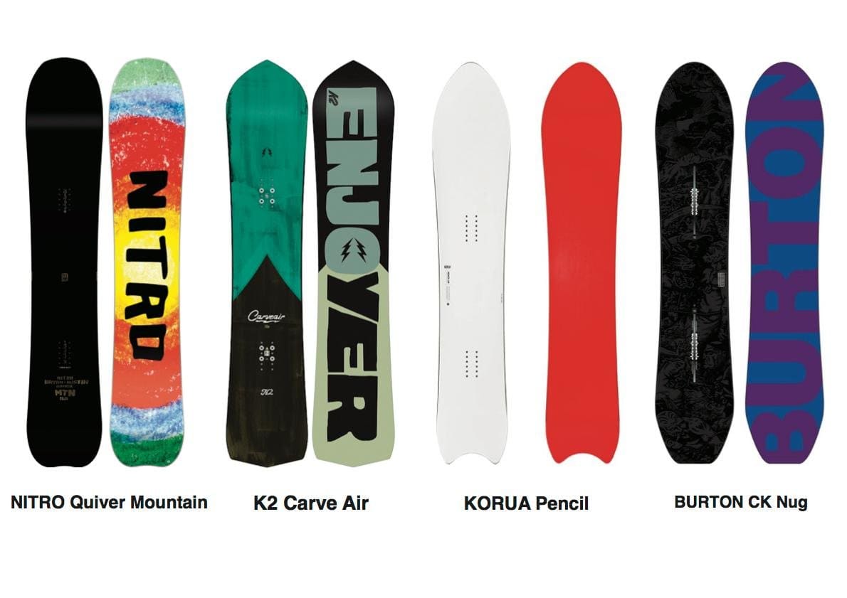 Der Carving-Trend wird aber auch von den Snowboard-Herstellern unterstützt, wenn nicht sogar provoziert. Ob das Nitro «Quiver Mountain», das Burton «CK Nug», das K2 «Carve Air» beziehungsweise das K2 «Cool Bean» ( Testbericht von TLF) oder alle Boards von Korua – sie verführen mit ihren exotischen Shapes zu hemmungslosen Carving-Orgien auf der Piste. Mit kurzen Tails und langen Noses soll das perfekte Board- und Surfgefühl ermöglicht werden. Rückwärtsfahren? Wozu?!
