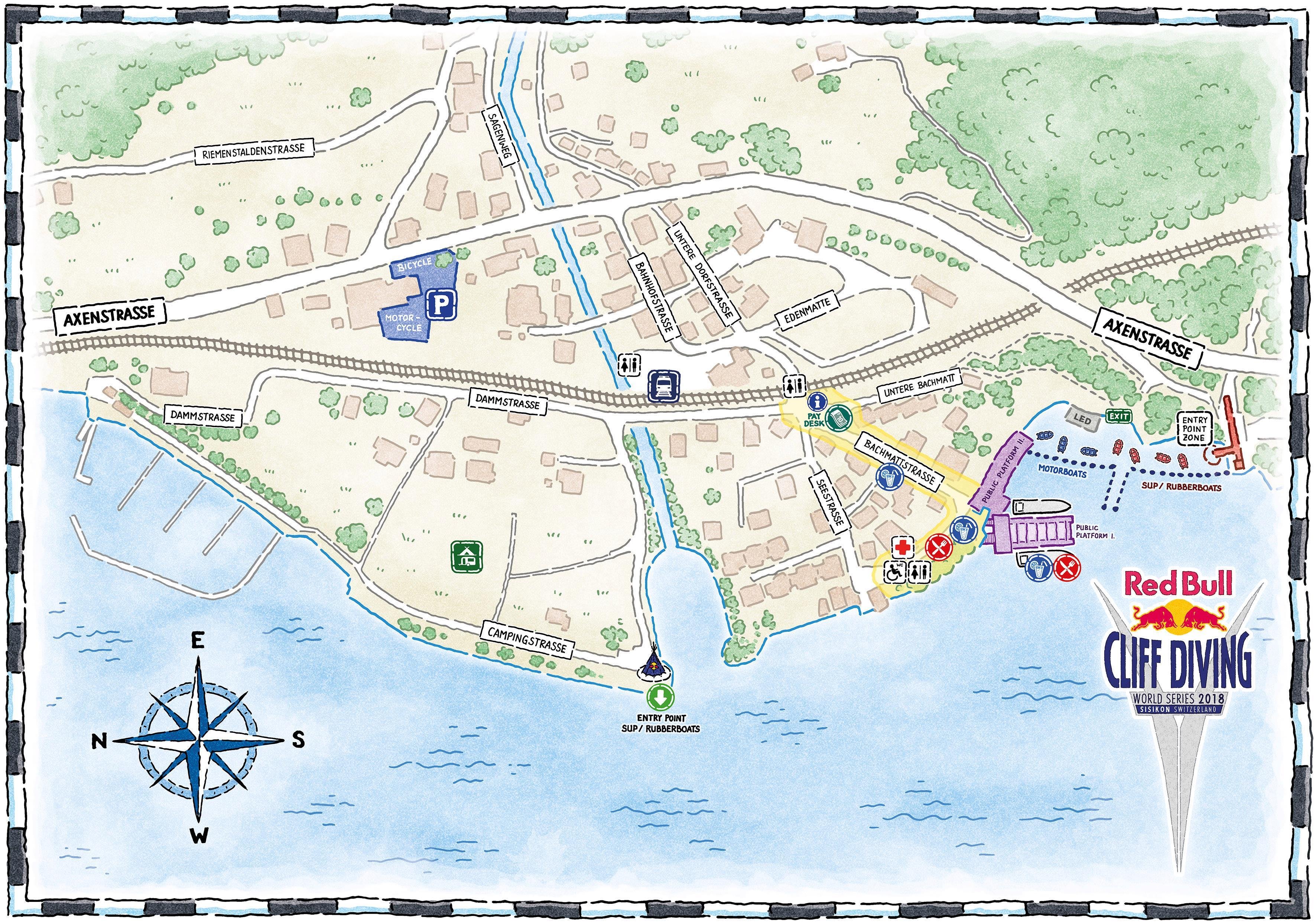 Die bequemste Art und Weise ist die Anreise mit dem Zug. Neben dem normalen Fahrplan sind für das Red Bull Cliff Diving Sonderzüge der SBB im Einsatz. Diese fahren am Samstag, 04.08. sowie am Sonntag 05.08. Der detaillierte Fahrplan kannst du hier öffnen.