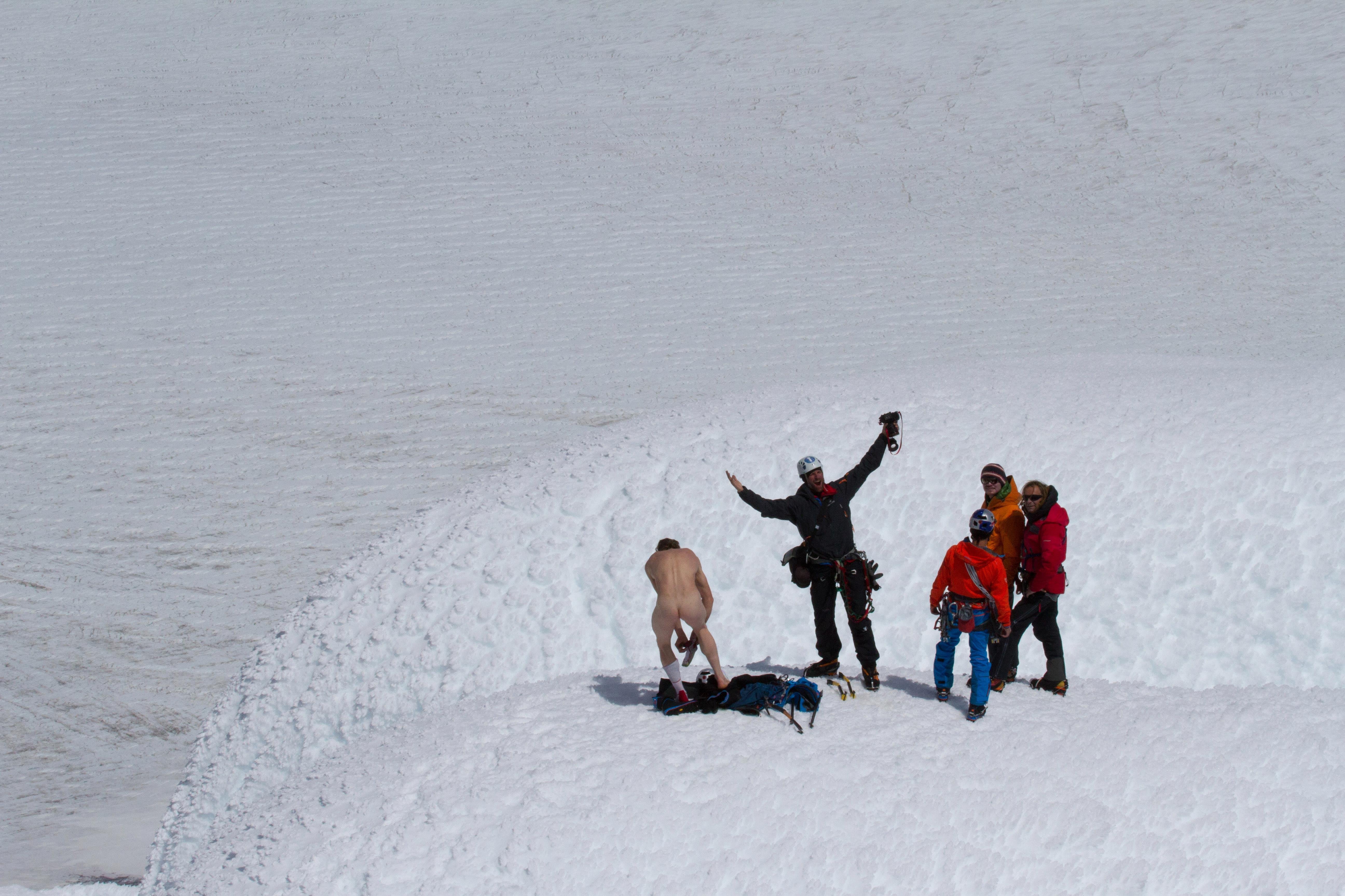 Warum entledigte sich Davids Kletterpartner, Peter Ortner, am Gipfel all seiner Kleider?