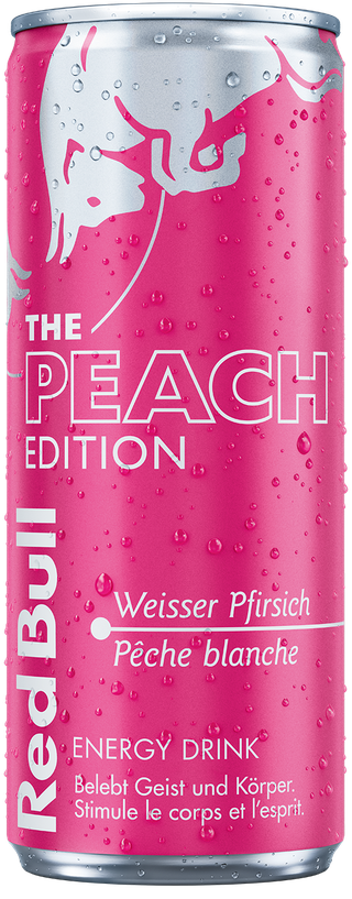 Eine 250 ml-Dose Red Bull Peach Edition enthält 27 g Zucker.