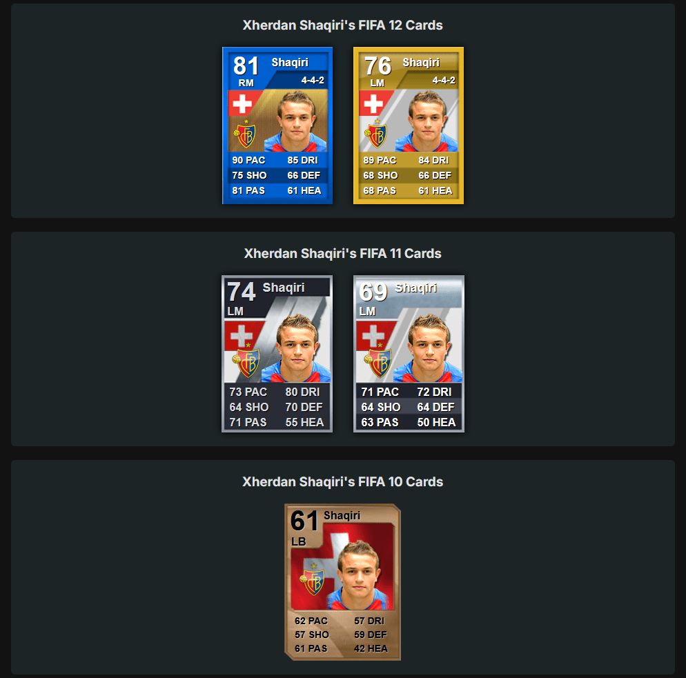 In FIFA 10 und FIFA 11 war Shaqiri eine klassische Bronze- bis Low-Silber-Option. Rating 61, später leichte Anpassungen, aber ohne spielerischen Impact. Erst mit dem Durchbruch beim FC Basel änderte sich das Bild.
