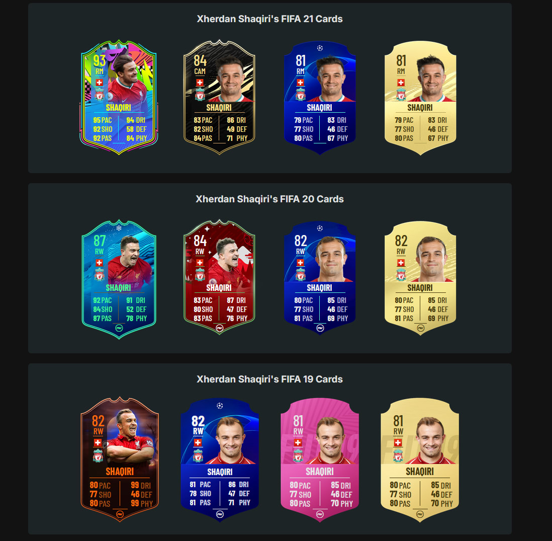 Wie mit dem FC Bayern gewann Shaqiri auch beim FC Liverpool alles, was auf Klubebene möglich war: Champions League, Premier League, Klub-WM, UEFA-Super-Cup. In Ultimate Team äußerte sich das im Gegensatz zu seiner Zeit in München vor allem über Event-Karten und vereinzelten Performance-Upgrades.