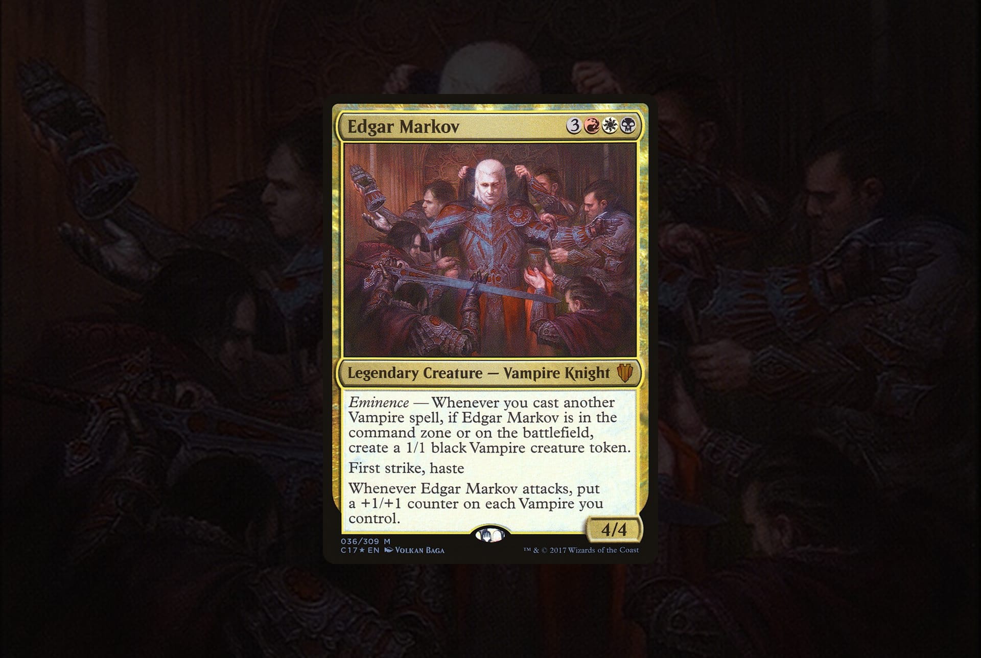 Tribal-Strategien sind oft gute Einstiegspunkte für neue Spieler. Es ist einfach Synergien zwischen Karten des selben Volkes zu sehen, und zu nutzen. Elfen sind ein beliebter Archetyp. Aber durch den Release von Edgar Markov haben Vampire einen starken Schub erhalten. Seine Farbidentität gibt Zugriff auf eine Vielzahl starker Blutsauger wie Champion des Zwielichts oder Olivia Voldaren. Letztere war früher die beste Wahl für einen Vampir-Commander. Durch den Gewinn von weißen Karten kann aber vor allem die "Aristocrats"-Strategie verstärkt gespielt werden. Hier hilft die Eminenz-Fähigkeit von Edgar Markov, die selbst dann aktiv wird, wenn er sich in der Commander-Zone befindet.