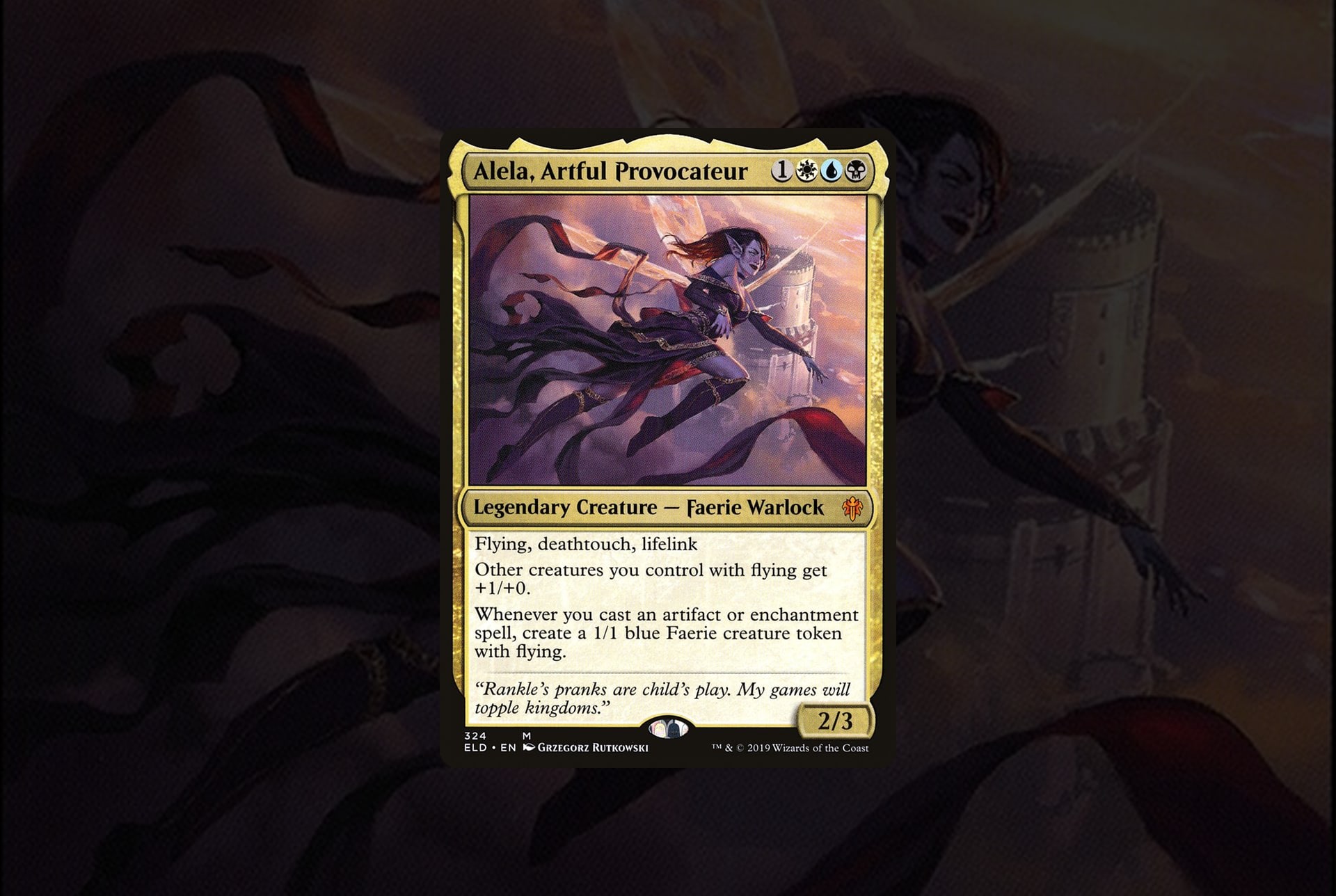 Alela bietet eine spannende Variante für Fans von Wheenie-Decks. Auf den ersten Blick wirkt sie wie der perfekte Commander für die “Flying Men”-Strategie, in der kleine, fliegende Kreaturen mit Karten wie Zusammenkunft der Krieger oder Günstige Winde aufpumpt, um den Gegner zu überrennen.Alela selbst versorgt euch regelmäßig mit Fee-Spielsteinen, die ihr dann in den Kampf schicken könnt. Da diese Fähigkeit durch das Ausspielen von Artefakten und Verzauberungen triggert, bietet sich hier die Gelegenheit, sich in einen weiteren Archetyp auszubreiten. Besonders der Fokus auf Verzauberungen ist spannend. Die zuvor genannten Hymnen-Effekte sind ohnehin Teil dieses Kartentyps. Aber auch Siegel des leeren Throns und Aufstieg des Luminarchen bieten optimale Synergie.