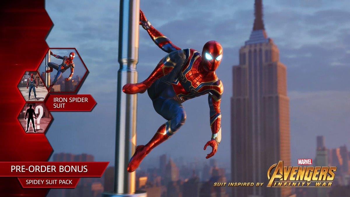 Mittlerweile sind drei alternative Kostüme bekannt: Fans der Comics kommen in den Genuss von Spider Punk und Spider Noir. Außerdem ist der von Tony Stark designten Iron Spider-Anzug aus dem Kinofilm Avengers: Infinity War mit von der Partie. Letzterer verfügt über vier zusätzliche Greifarme.