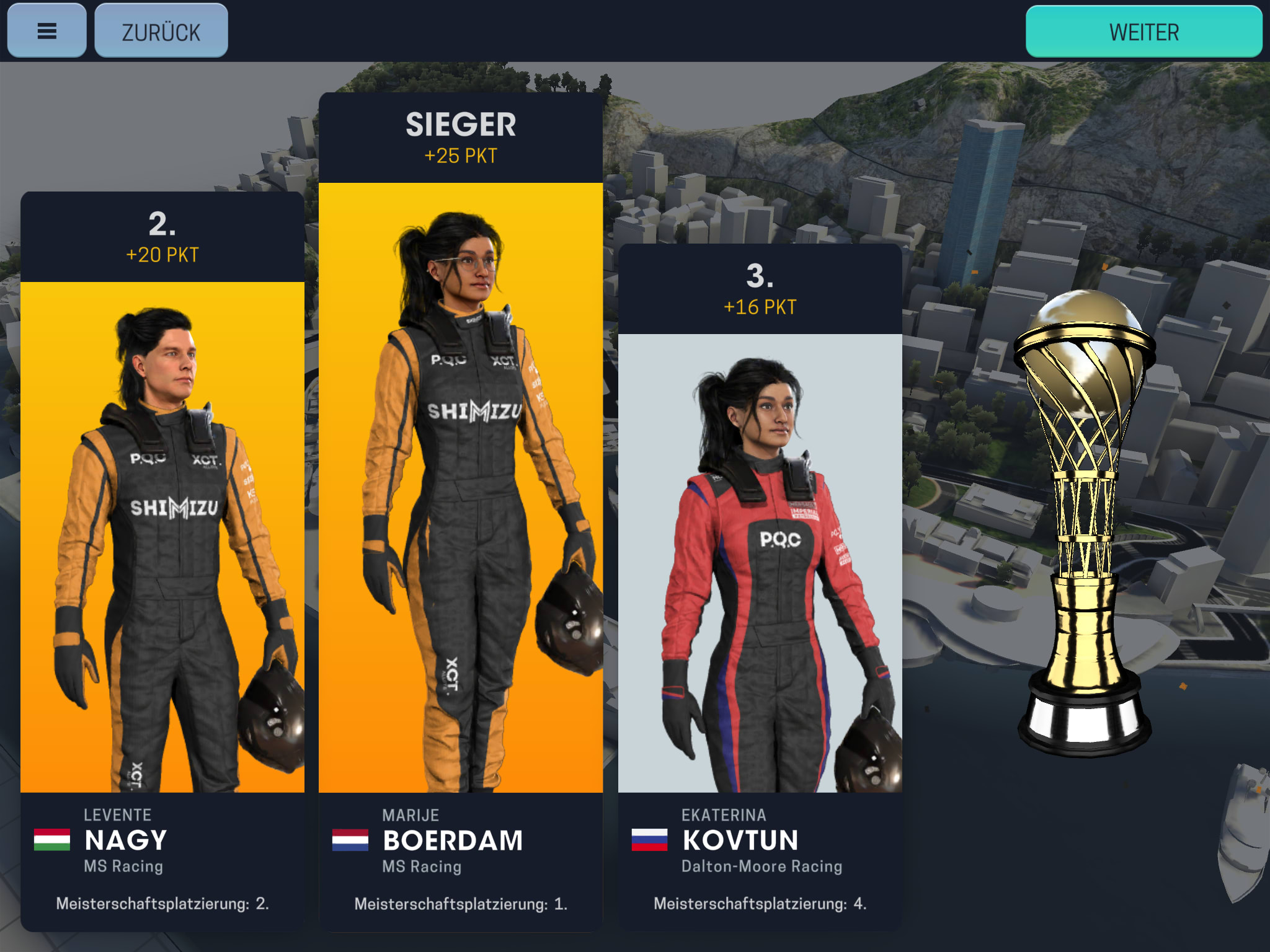 Wichtig ist am Ende einer Saison vor allem der Fahrertitel, da euch dieser am meisten Geld einbringt - wenn ihr ihn denn gewinnt. Daher solltet ihr euch zunächst auf euren besseren Fahrer konzentrieren.