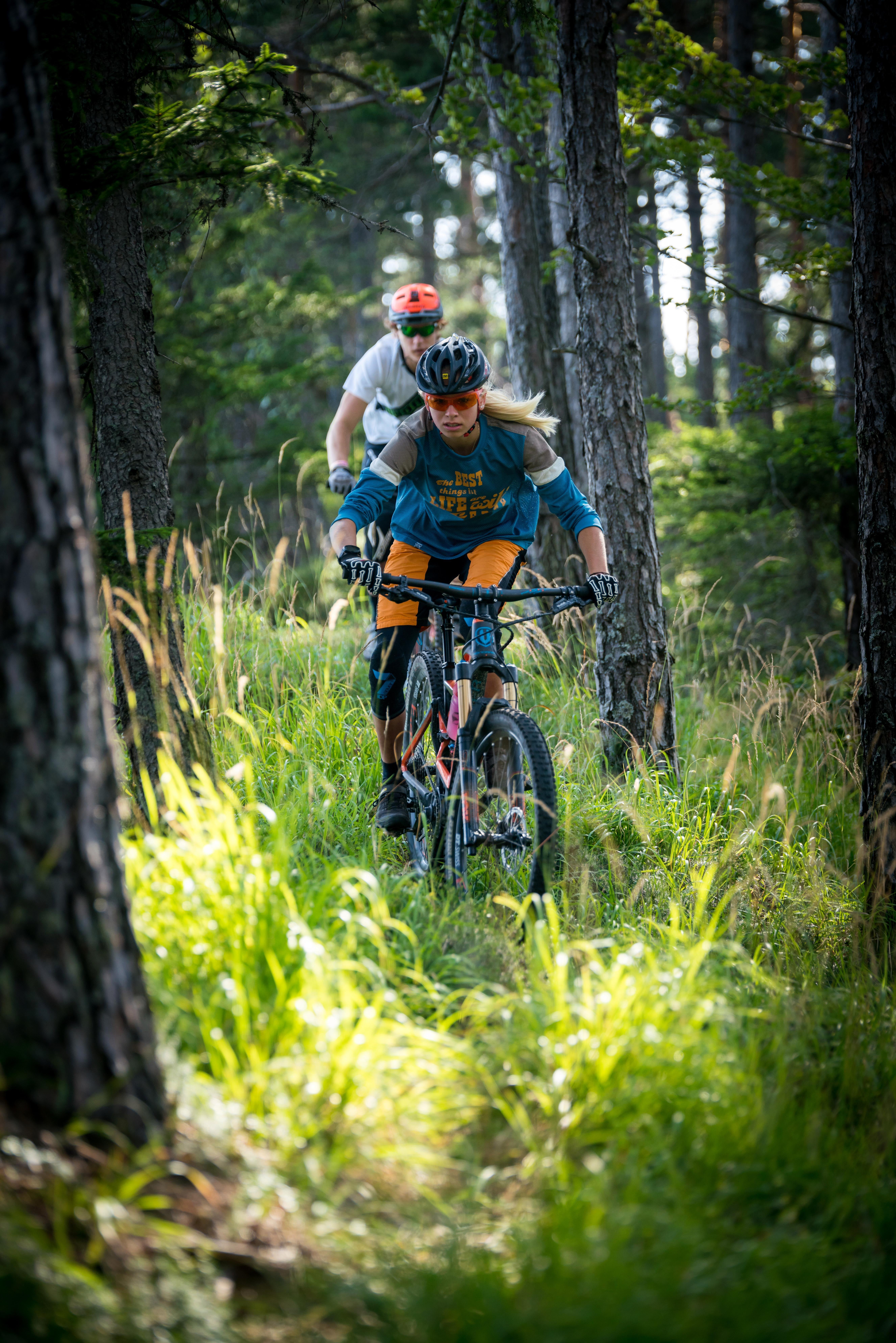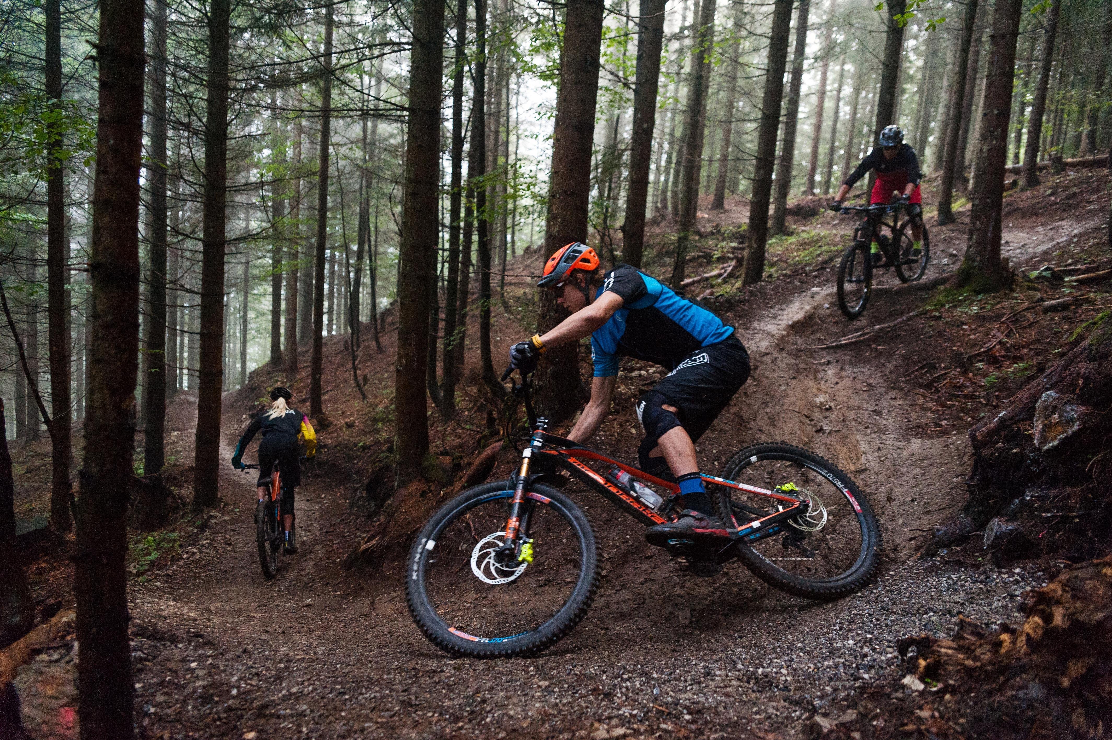 Der zweite Part durch den Buchenwald ist weniger steil, dafür etwas schneller und breiter. Er hat jede Menge Flow übrig und ist relativ einfach zu fahren. Vor allem aber eignet sich der weiche Waldboden hervorragend zugleich für Anfänger und für fortgeschrittene Fahrer.