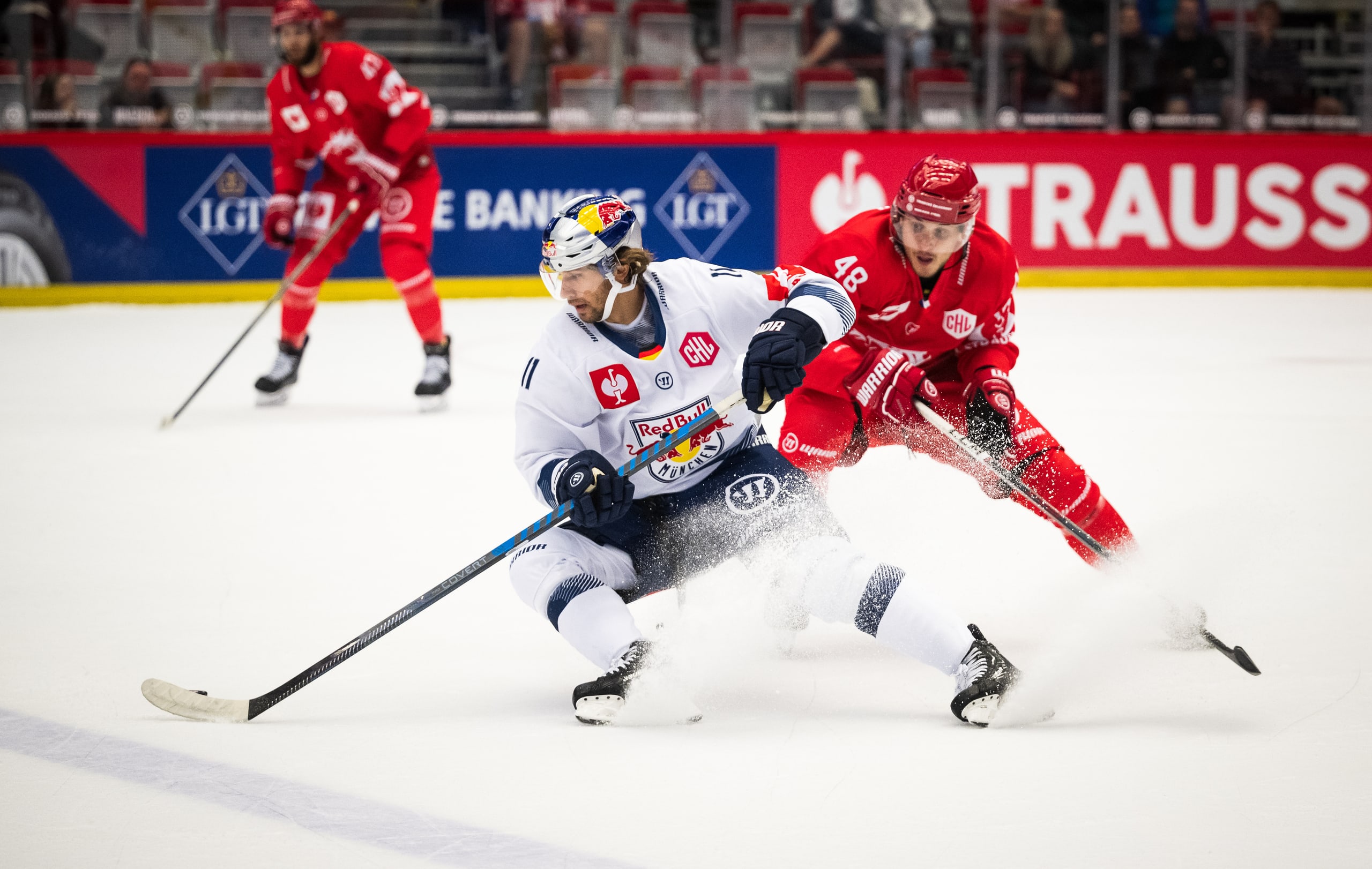 Il s'agit entre autres des ligues nationales de hockey sur glace de Norvège, du Danemark ou de France. Ceux qui parlent de l'équipe nationale allemande ne peuvent pas passer à côté des cracks du Red Bull Munich. L'équipe qui a participé huit fois à la CHL a atteint deux fois les huitièmes et les quarts de finale.